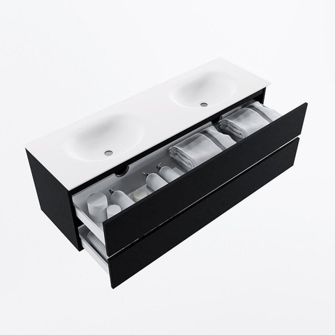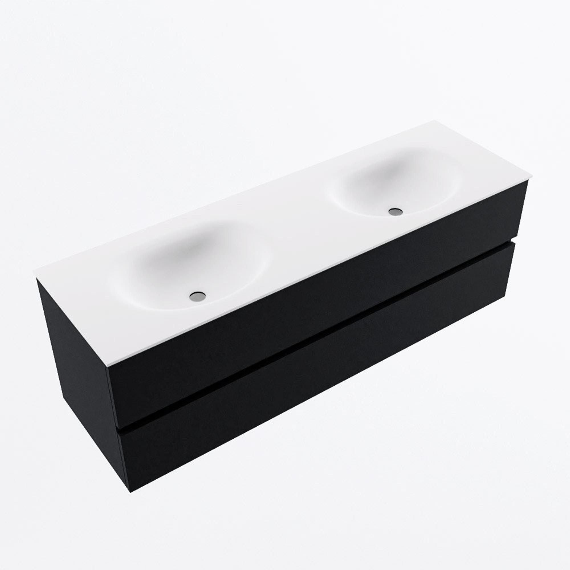 MONDIAZ VICA 150cm badmeubel onderkast Urban 2 lades. Wastafel MOON dubbel zonder kraangat, kleur Talc.