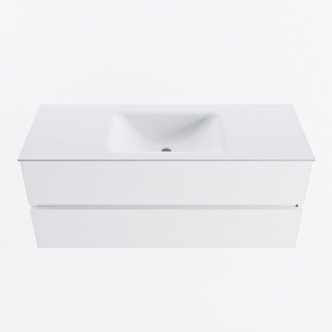 MONDIAZ VICA 120cm badmeubel onderkast Talc 2 lades. Wastafel CLOUD midden 1 kraangat, kleur Talc.
