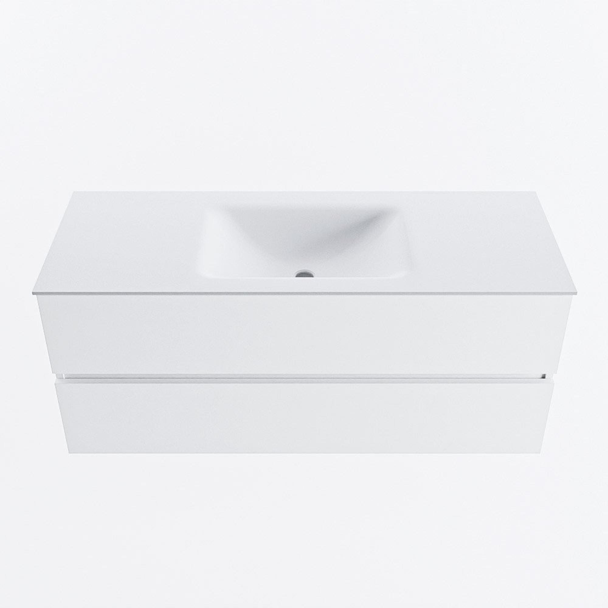 MONDIAZ VICA 120cm badmeubel onderkast Talc 2 lades. Wastafel CLOUD midden zonder kraangat, kleur Talc.