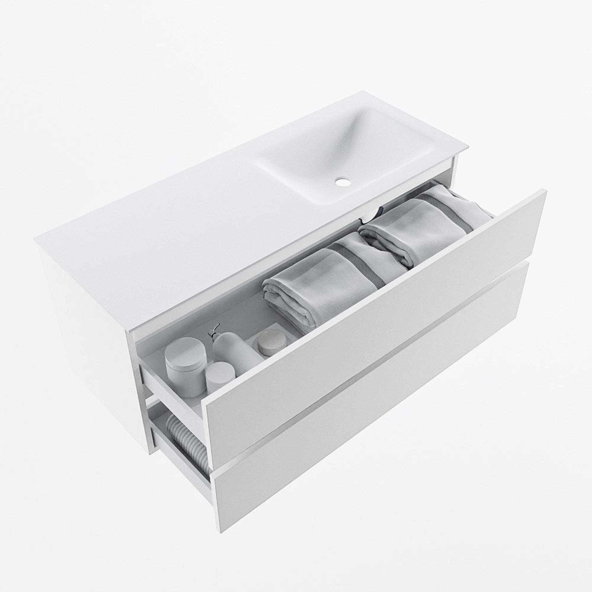MONDIAZ VICA 120cm badmeubel onderkast Talc 2 lades. Wastafel CLOUD rechts zonder kraangat, kleur Talc.