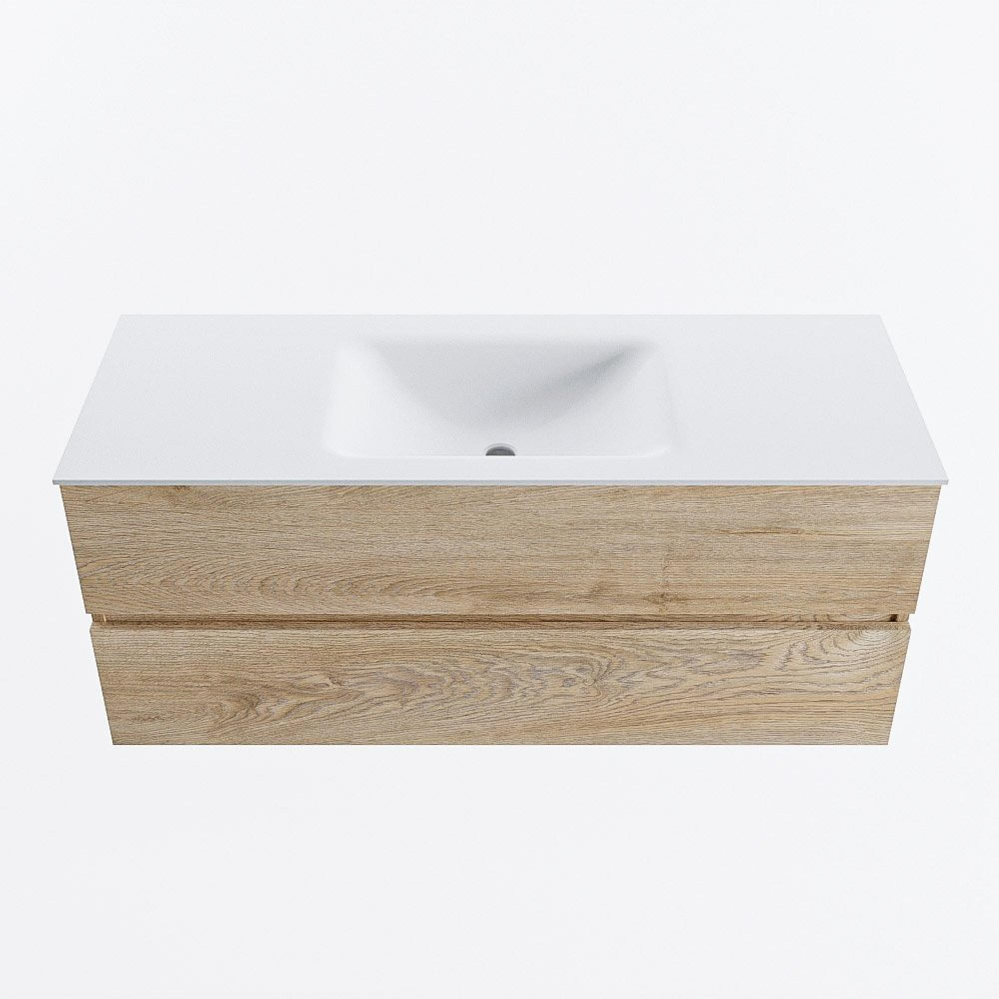 MONDIAZ VICA 120cm badmeubel onderkast Washed Oak 2 lades. Wastafel CLOUD midden 1 kraangat, kleur Talc.