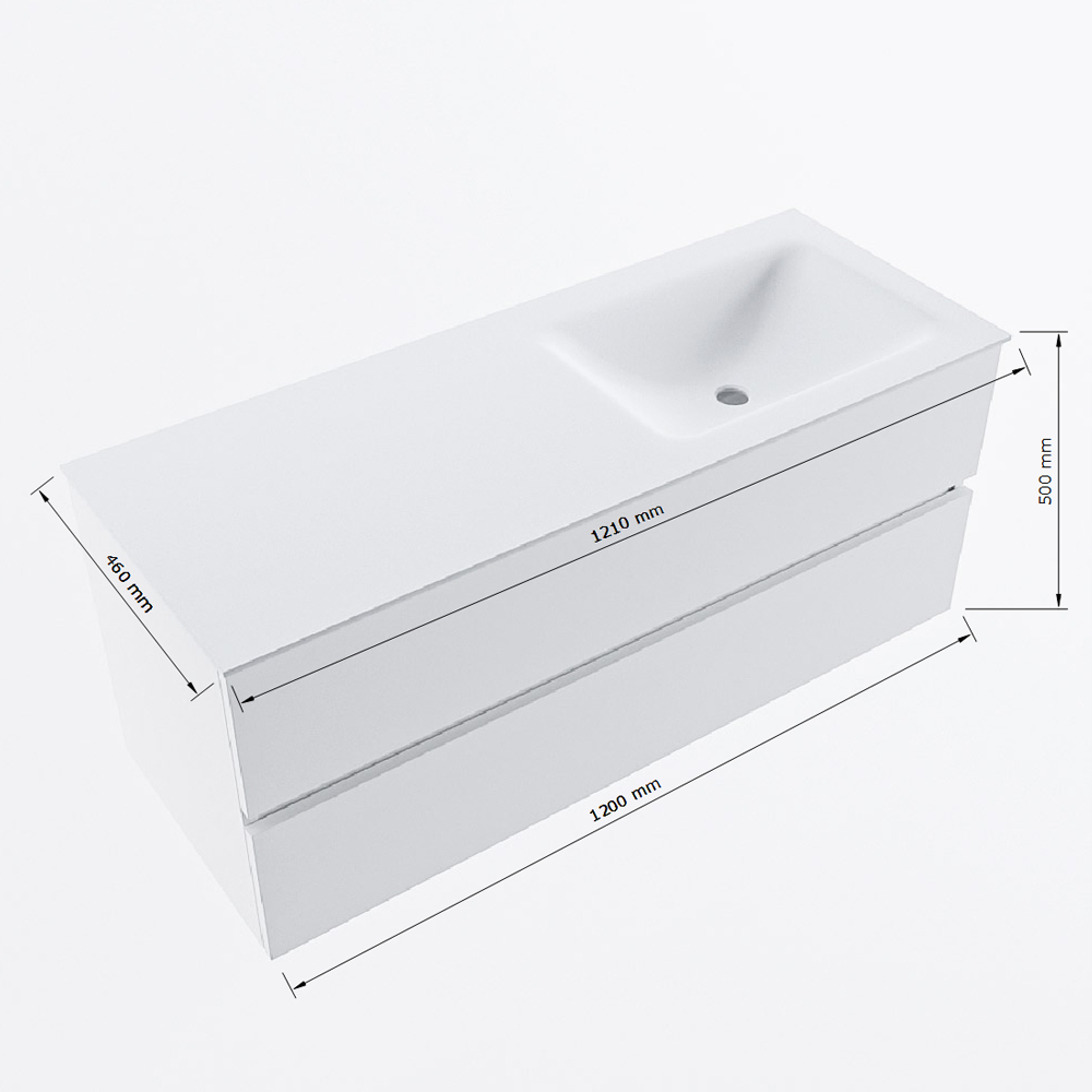 MONDIAZ VICA 120cm badmeubel onderkast Washed Oak 2 lades. Wastafel CLOUD rechts 1 kraangat, kleur Talc.