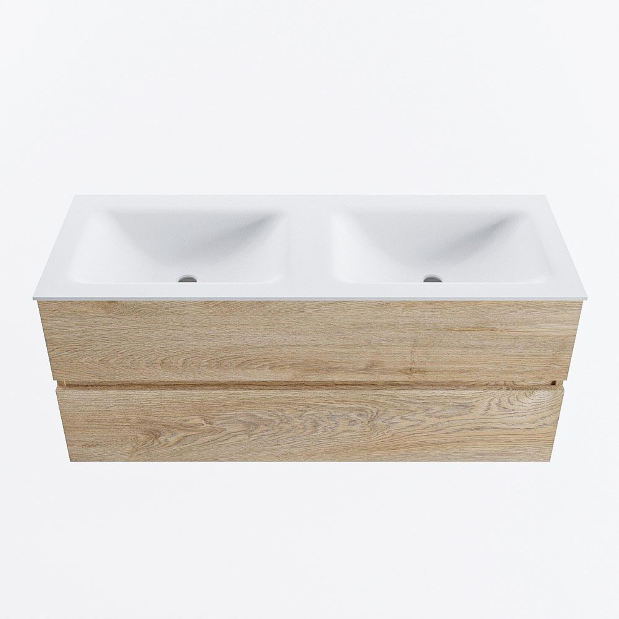 MONDIAZ VICA 120cm badmeubel onderkast Washed Oak 2 lades. Wastafel CLOUD dubbel 2 kraangaten, kleur Talc.