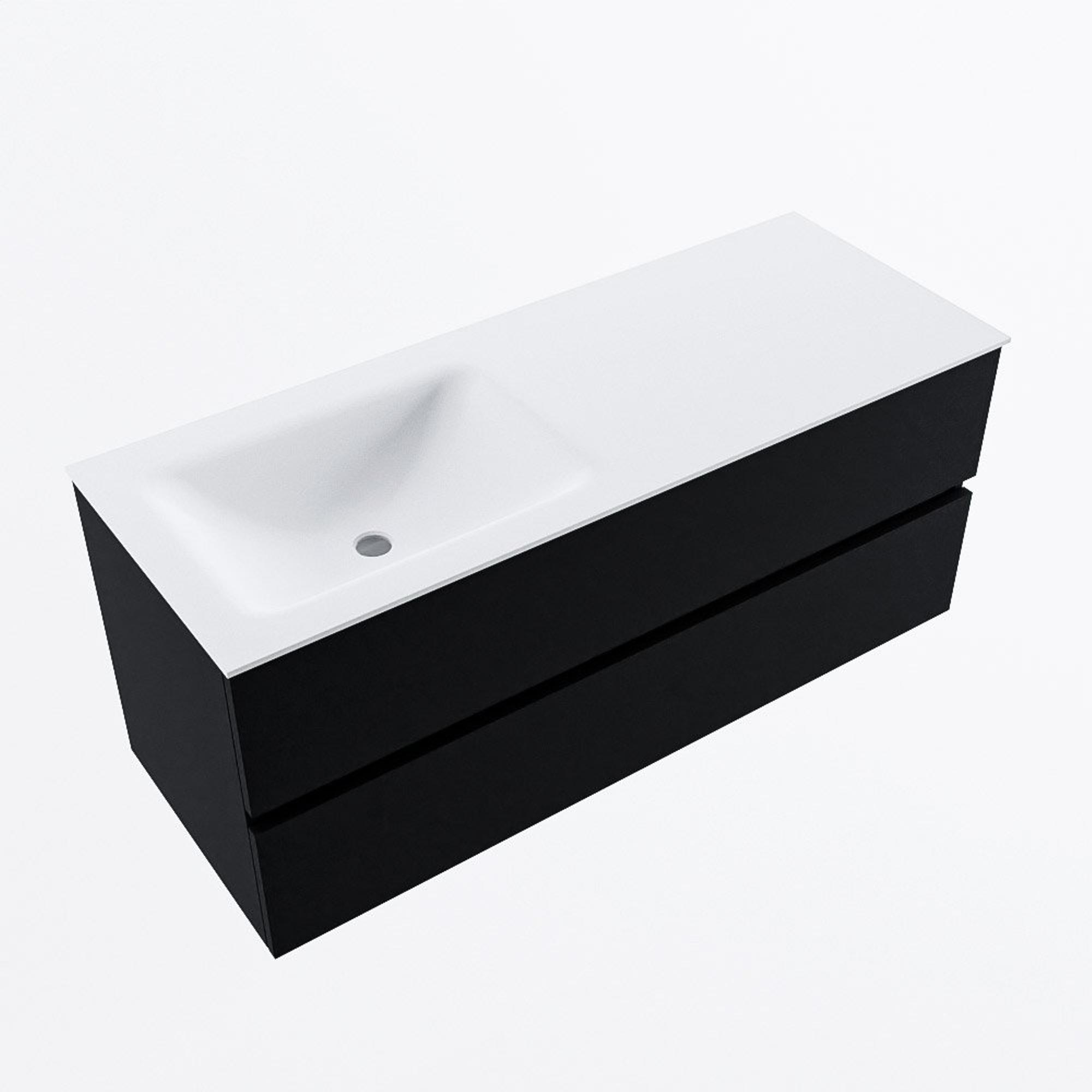 MONDIAZ VICA 120cm badmeubel onderkast Urban 2 lades. Wastafel CLOUD links zonder kraangat, kleur Talc.