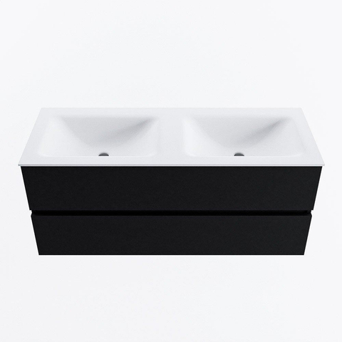 MONDIAZ VICA 120cm badmeubel onderkast Urban 2 lades. Wastafel CLOUD dubbel zonder kraangat, kleur Talc.