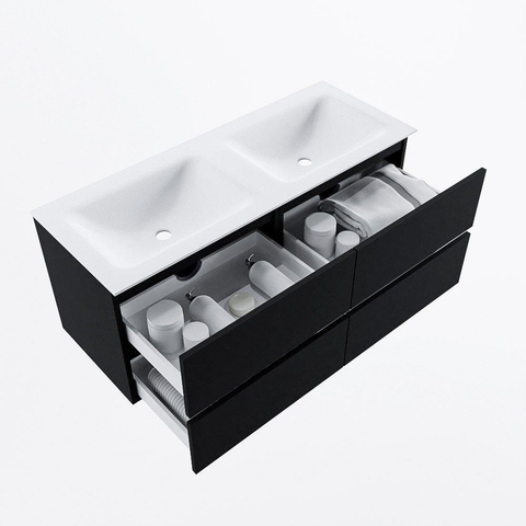 MONDIAZ VICA 120cm badmeubel onderkast Urban 4 lades. Wastafel CLOUD dubbel zonder kraangat, kleur Talc.
