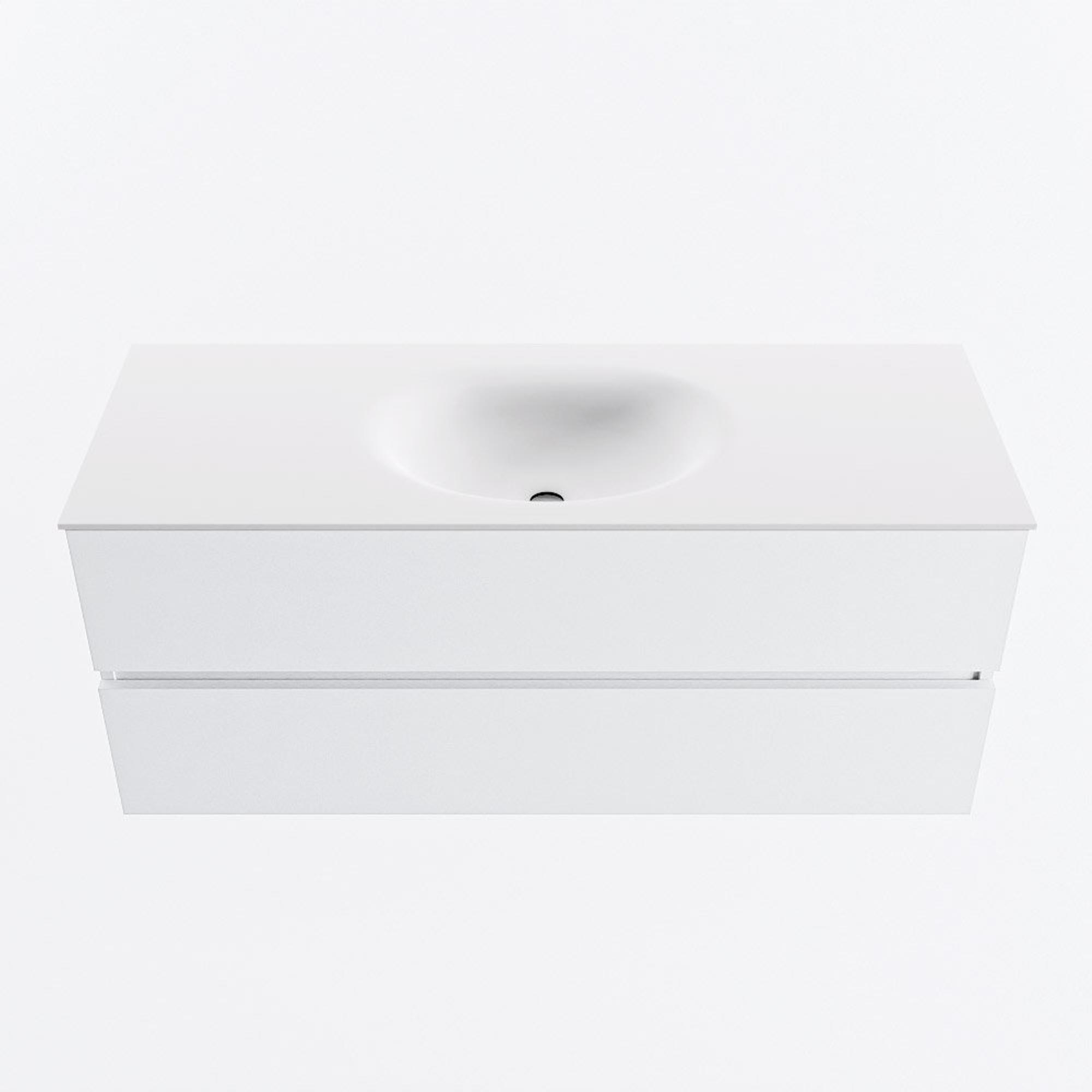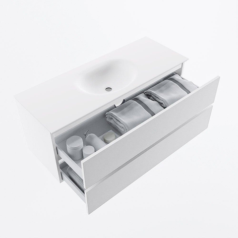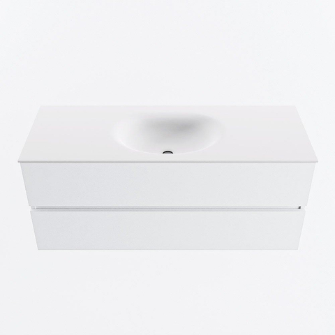 MONDIAZ VICA 120cm badmeubel onderkast Talc 2 lades. Wastafel MOON midden 1 kraangat, kleur Talc.