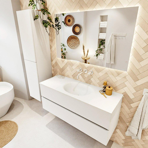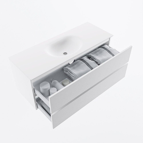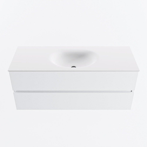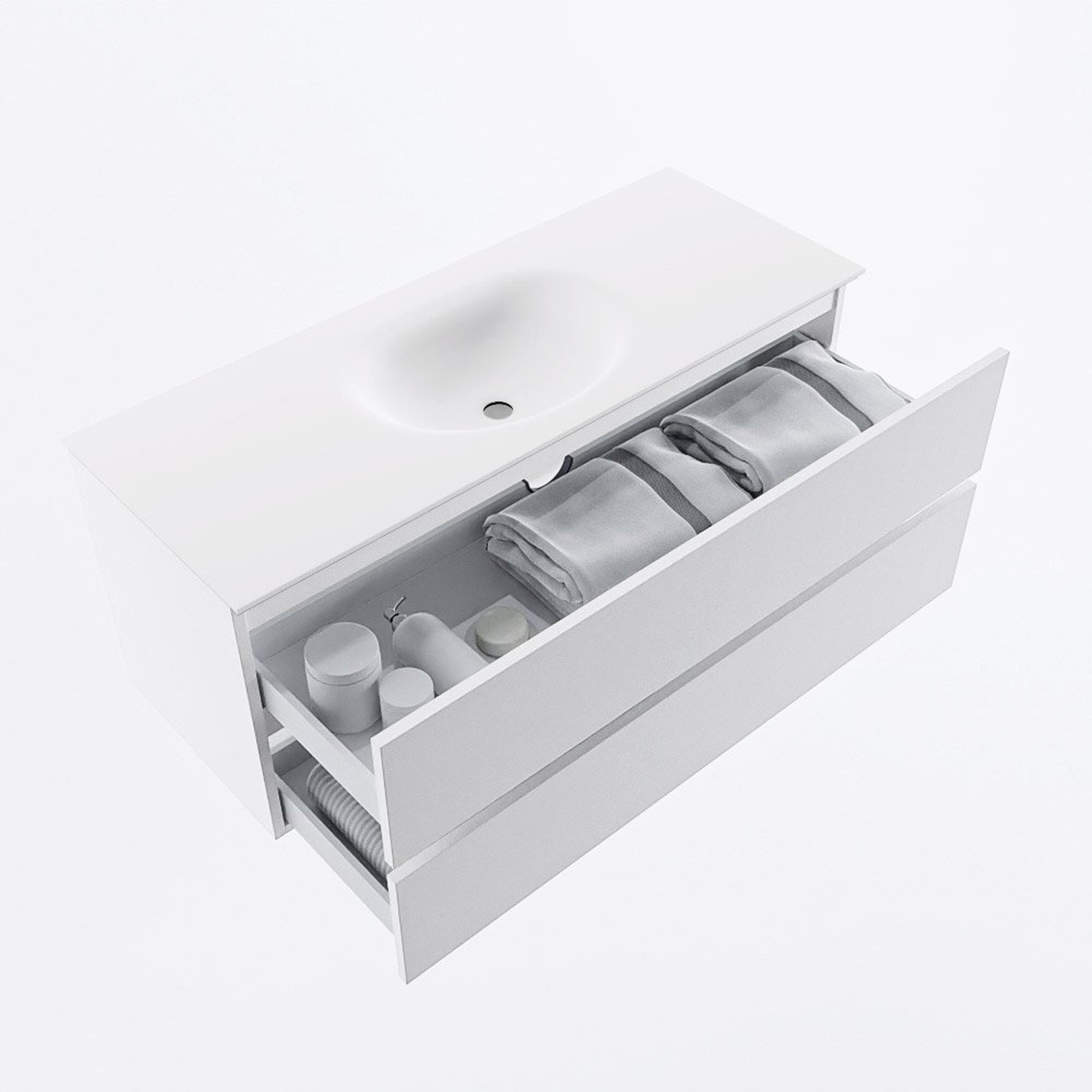 MONDIAZ VICA 120cm badmeubel onderkast Talc 2 lades. Wastafel MOON midden zonder kraangat, kleur Talc.