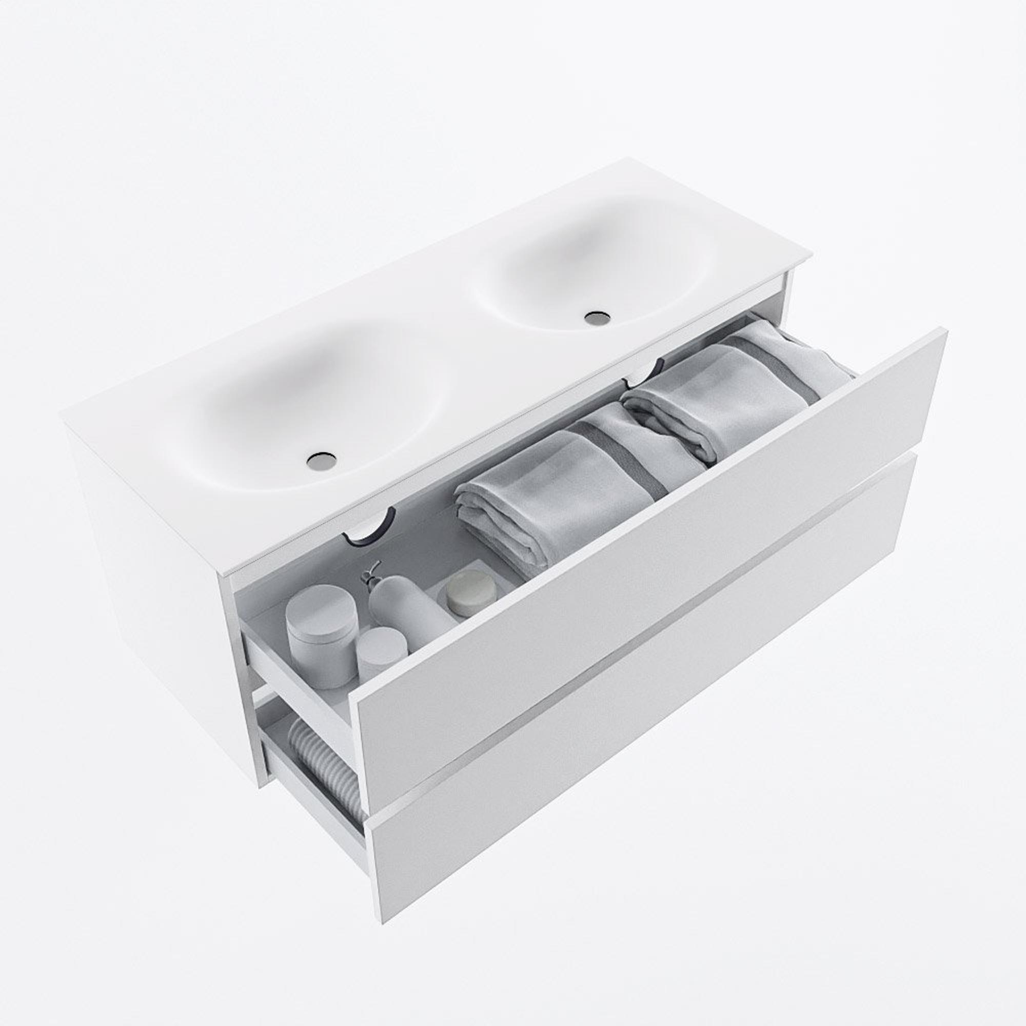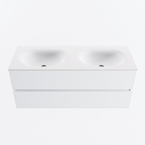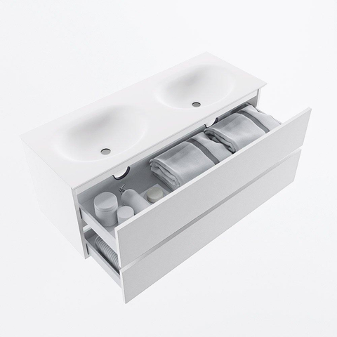 MONDIAZ VICA 120cm badmeubel onderkast Talc 2 lades. Wastafel MOON dubbel zonder kraangat, kleur Talc.
