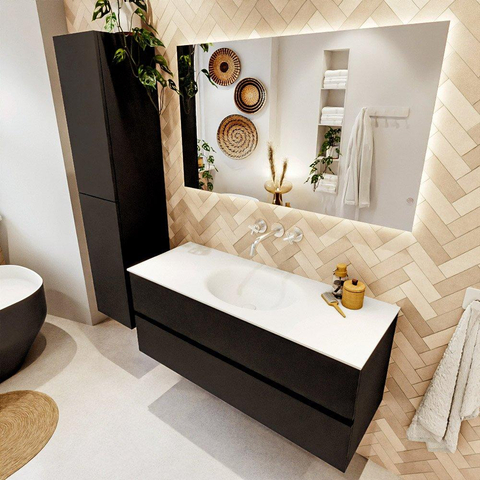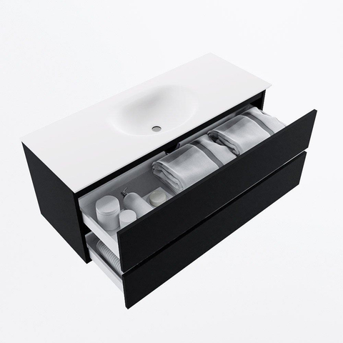 MONDIAZ VICA 120cm badmeubel onderkast Urban 2 lades. Wastafel MOON midden zonder kraangat, kleur Talc.