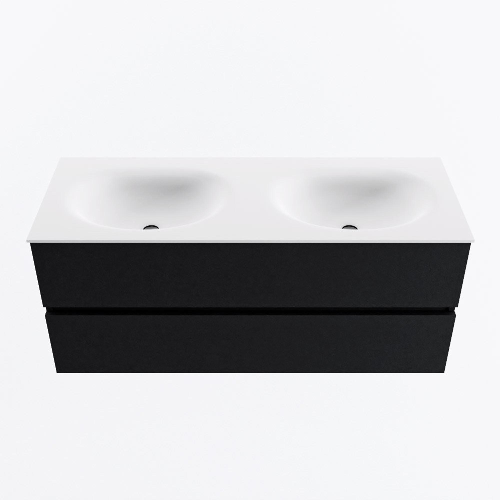MONDIAZ VICA 120cm badmeubel onderkast Urban 2 lades. Wastafel MOON dubbel zonder kraangat, kleur Talc.