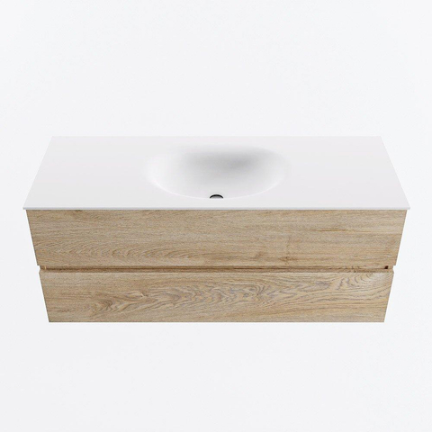 MONDIAZ VICA 120cm badmeubel onderkast Washed Oak 2 lades. Wastafel MOON midden zonder kraangat, kleur Talc.