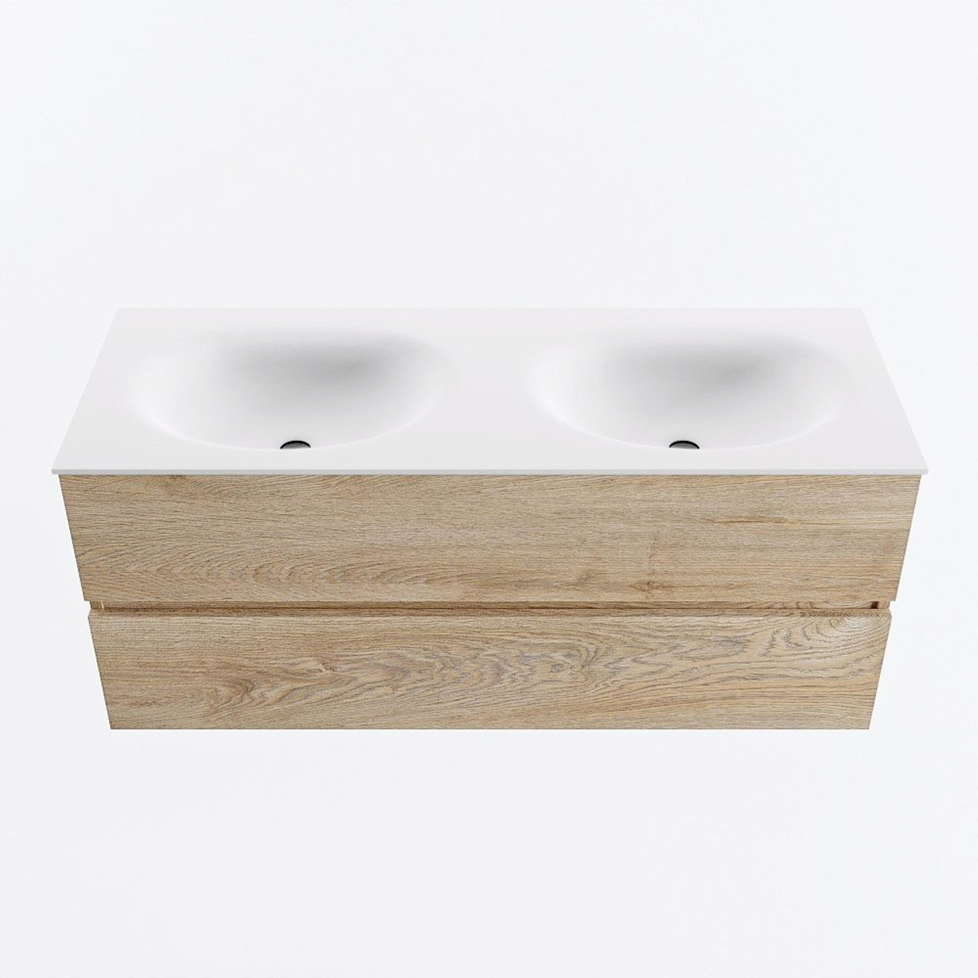 MONDIAZ VICA 120cm badmeubel onderkast Washed Oak 2 lades. Wastafel MOON dubbel zonder kraangat, kleur Talc.