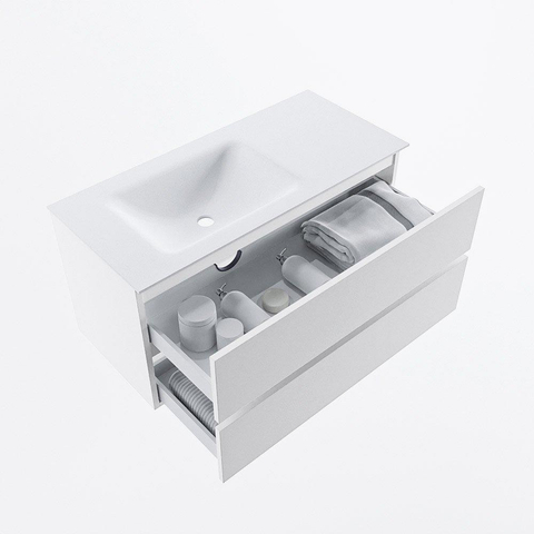 MONDIAZ VICA 100cm badmeubel onderkast Talc 2 lades. Wastafel CLOUD links 1 kraangat, kleur Talc.