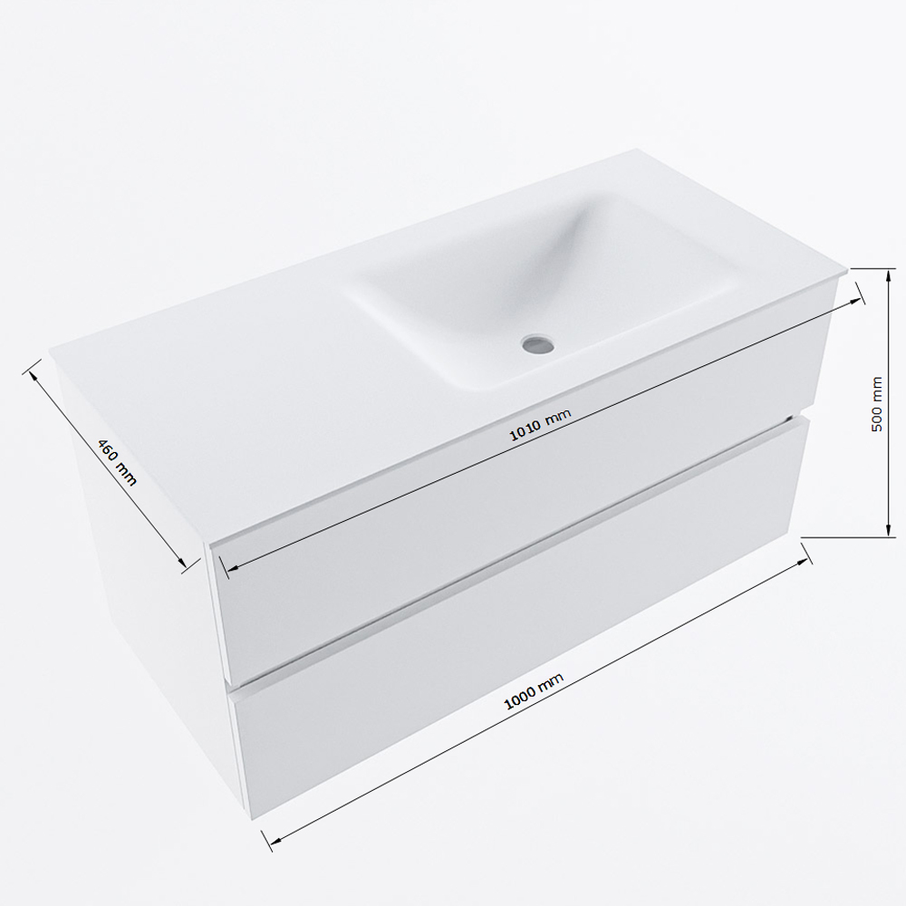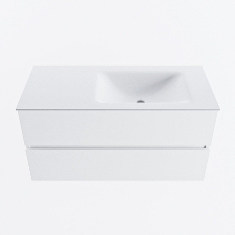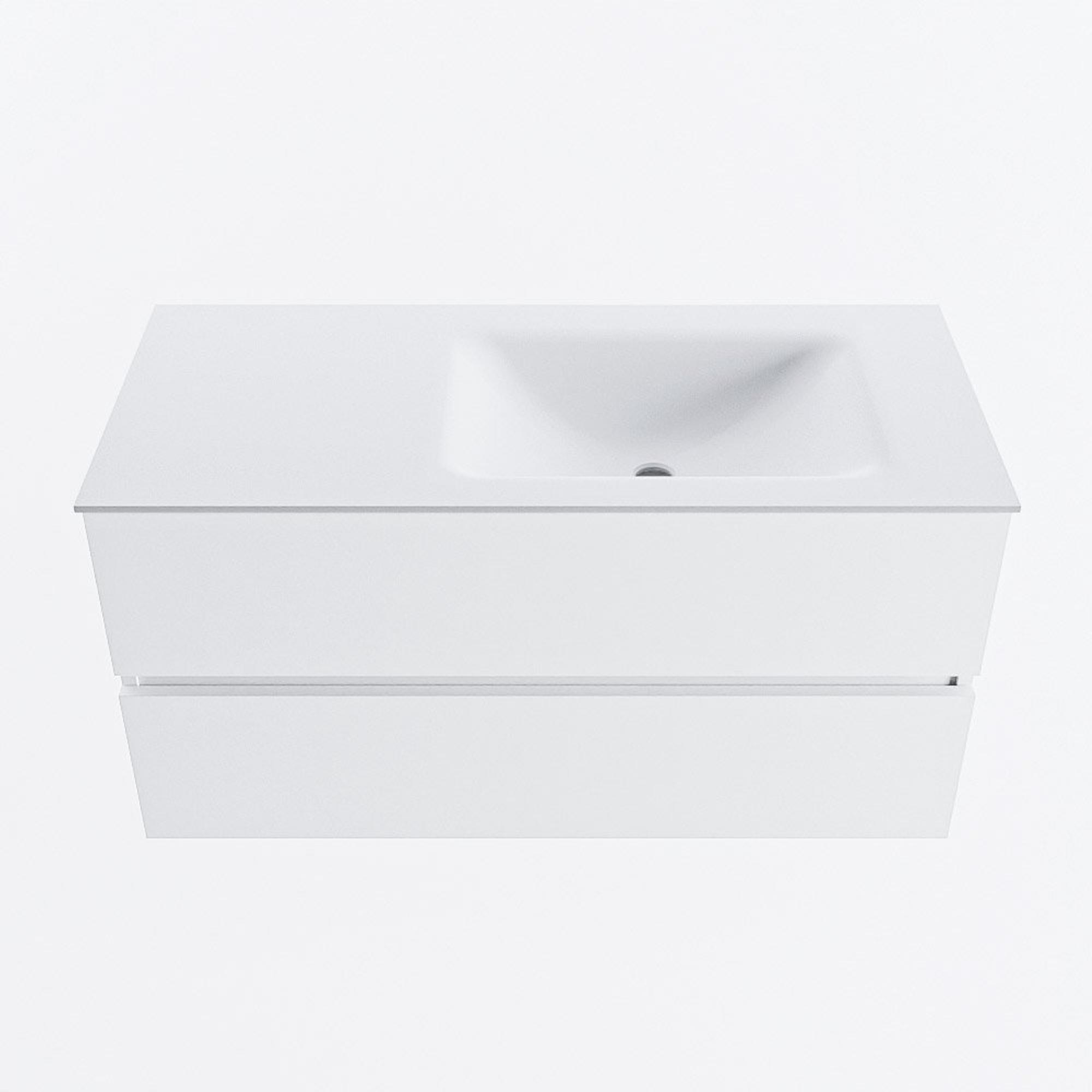 MONDIAZ VICA 100cm badmeubel onderkast Talc 2 lades. Wastafel CLOUD rechts zonder kraangat, kleur Talc.