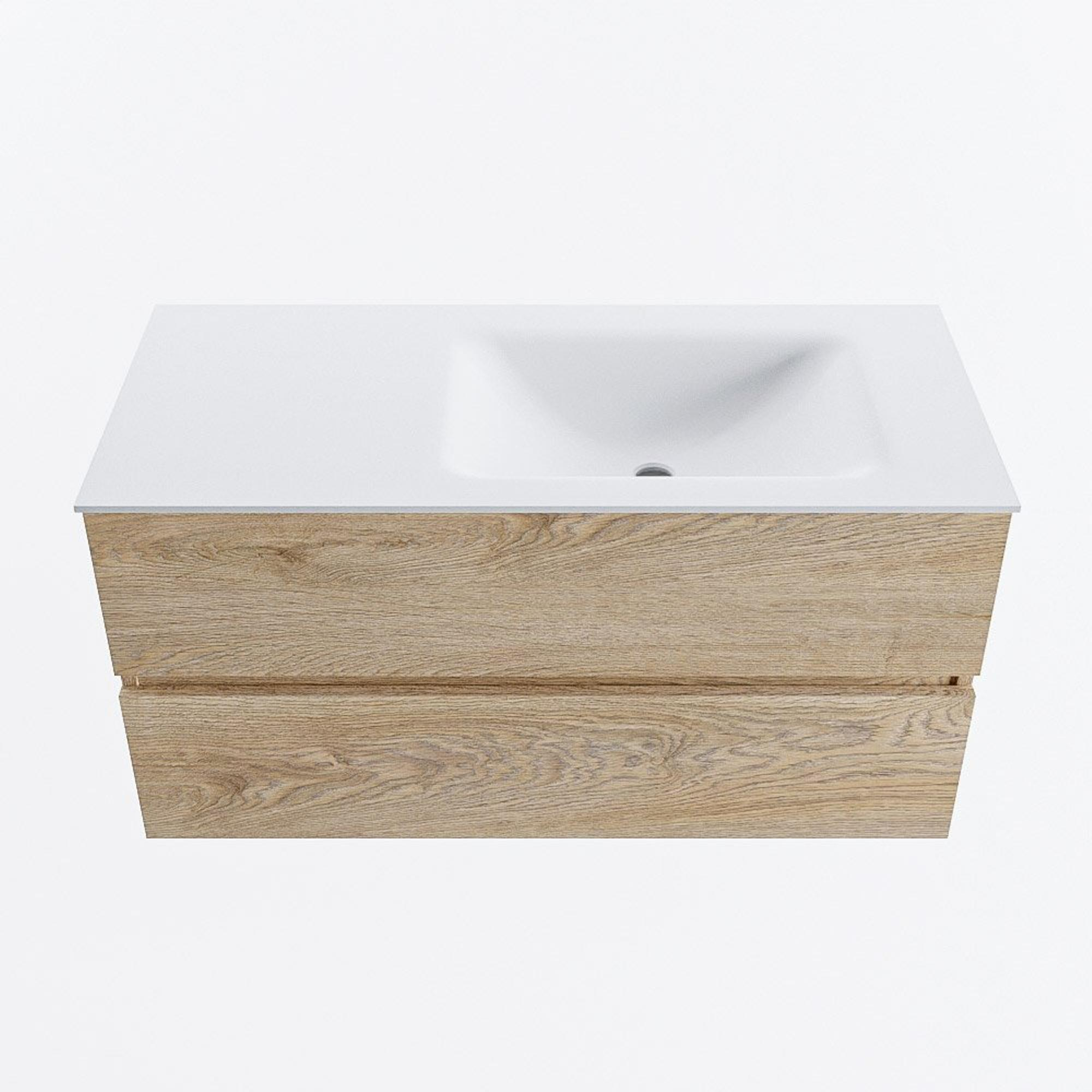 MONDIAZ VICA 100cm badmeubel onderkast Washed Oak 2 lades. Wastafel CLOUD rechts zonder kraangat, kleur Talc.