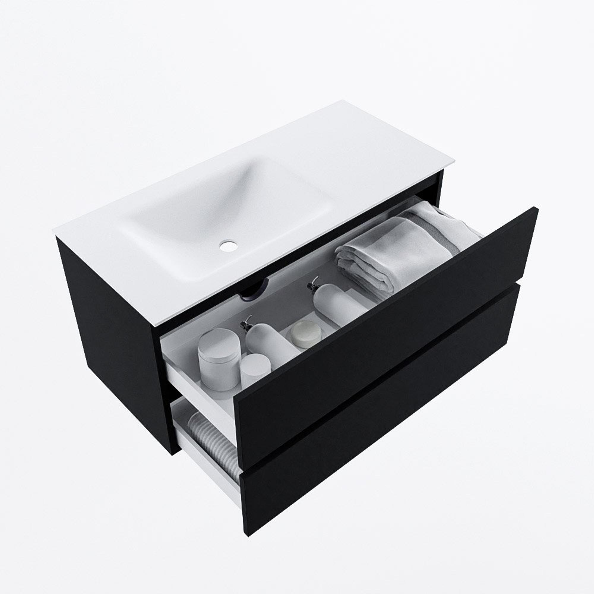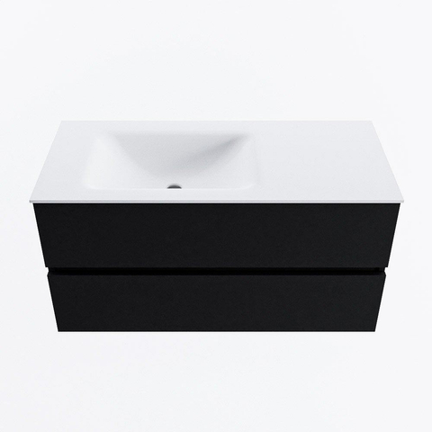 MONDIAZ VICA 100cm badmeubel onderkast Urban 2 lades. Wastafel CLOUD links 1 kraangat, kleur Talc.