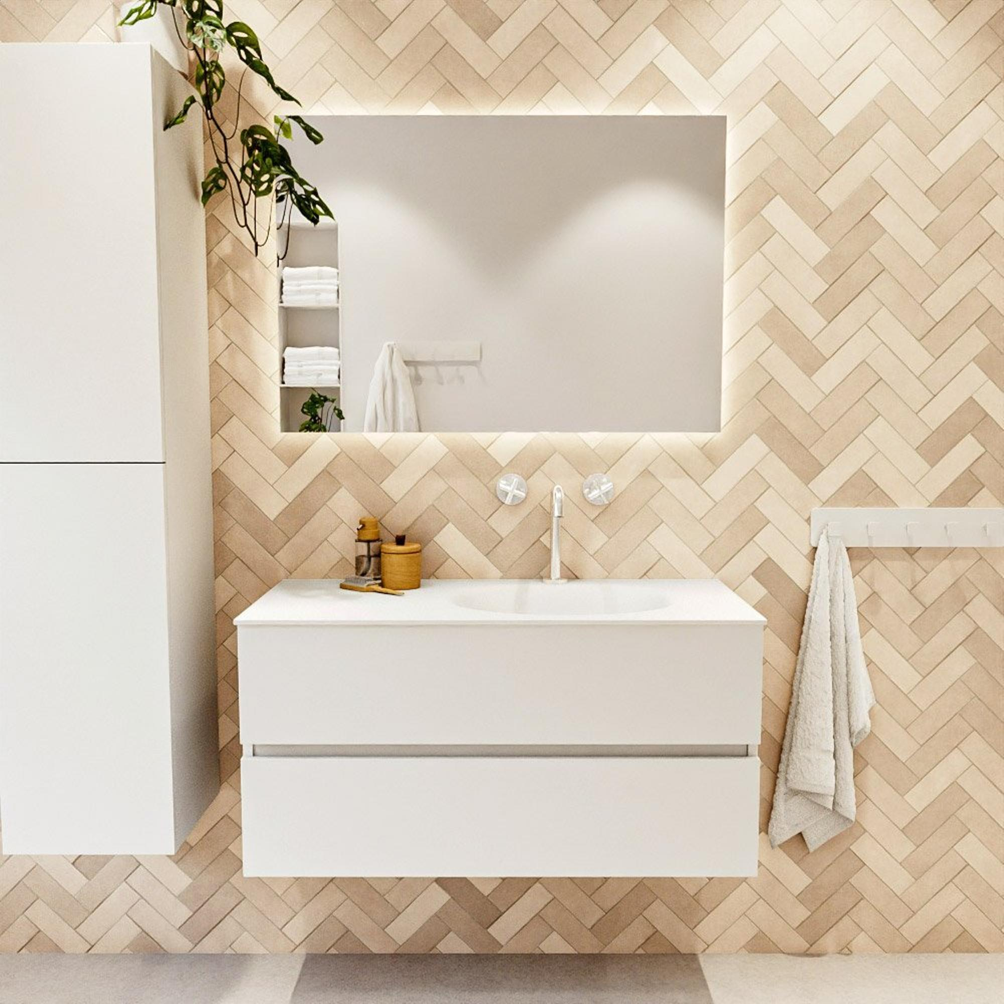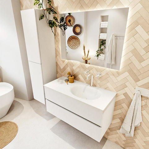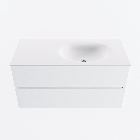 MONDIAZ VICA 100cm badmeubel onderkast Talc 2 lades. Wastafel MOON rechts 1 kraangat, kleur Talc.