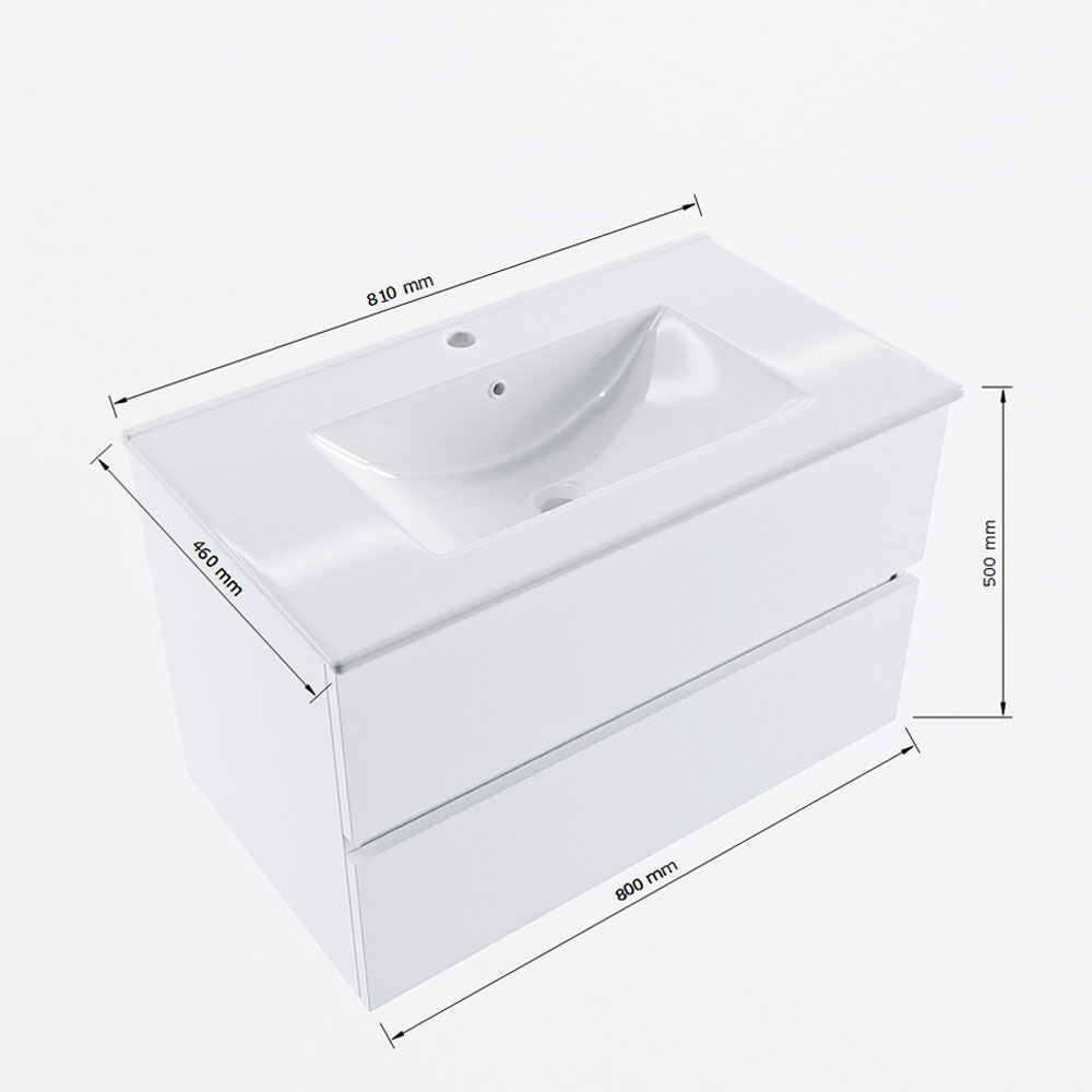 MONDIAZ VICA 80cm badmeubel onderkast Urban 2 lades. Wastafel DENIA midden 1 kraangat, kleur Glanzend Wit.