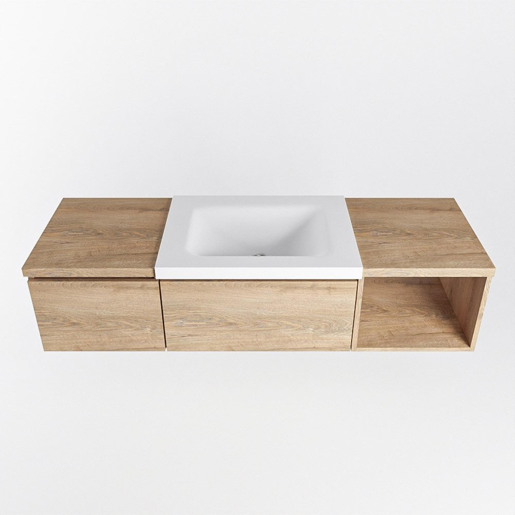 MONDIAZ BUKLA 140cm badmeubel met open module 40 rechts kleur Washed Oak met 2 lades. Wastafel CLOUD midden 1 kraangat kleur Talc.