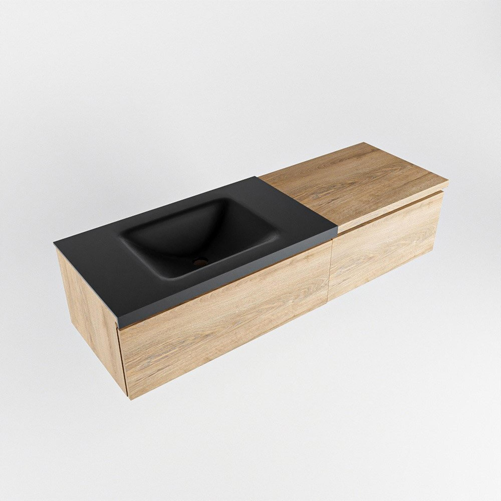 MONDIAZ BUKLA 140cm badmeubel met module 60 kleur Washed Oak met 2 lades. Wastafel CLOUD links 0 kraangaten kleur Urban.