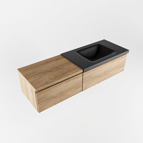 MONDIAZ BUKLA 140cm badmeubel met module 60 kleur Washed Oak met 2 lades. Wastafel CLOUD rechts 1 kraangat kleur Urban.