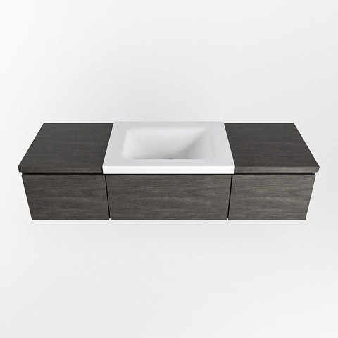Ervaar de perfecte combinatie van modern design en tijdloze elegantie met dit badmeubel. De diepe, rijke kleur Dark Brown geeft een warme en luxe uitstraling aan je badkamer. De 3 ruime lades bieden voldoende opbergruimte voor al je badkamerbenodigdheden, terwijl de strakke lijnen en verfijnde afwerking een vleugje verfijning toevoegen aan de ruimte.