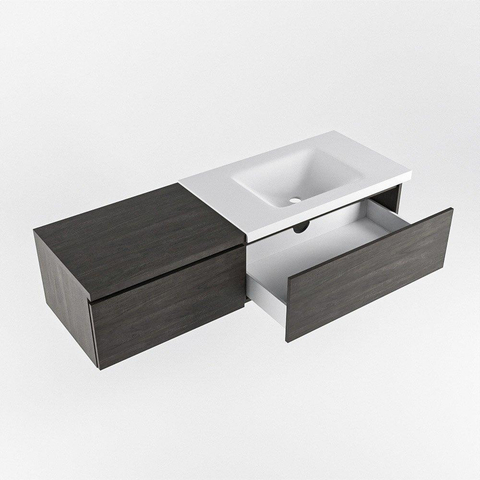 MONDIAZ BUKLA 140cm badmeubel met module 60 kleur Dark Brown met 2 lades. Wastafel CLOUD rechts 0 kraangaten kleur Talc.