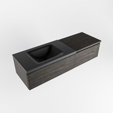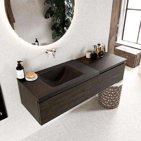 MONDIAZ BUKLA 140cm badmeubel met module 60 kleur Dark Brown met 2 lades. Wastafel CLOUD links 0 kraangaten kleur Urban.
