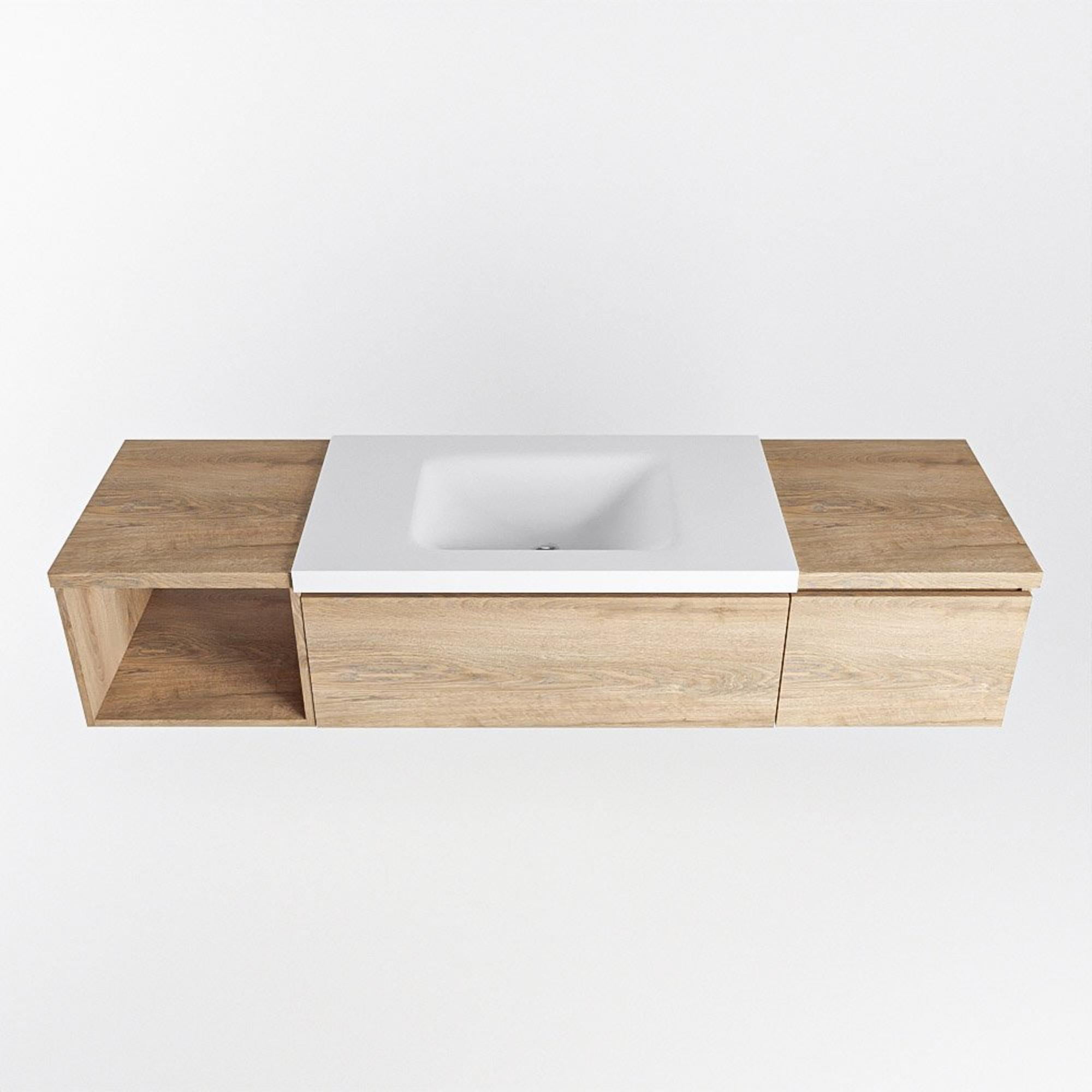 MONDIAZ BUKLA 160cm badmeubel met open module 40 links kleur Washed Oak met 2 lades. Wastafel CLOUD midden 0 kraangaten kleur Talc.