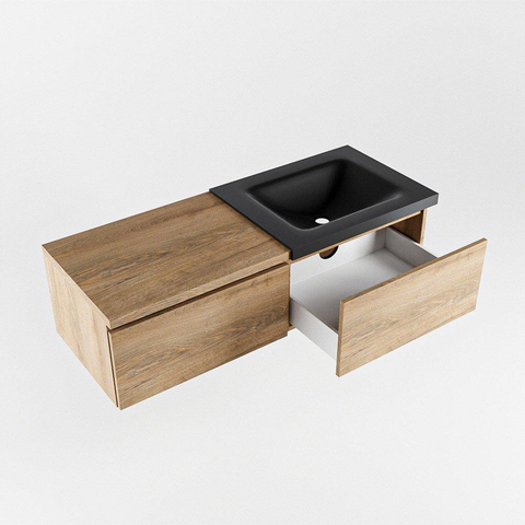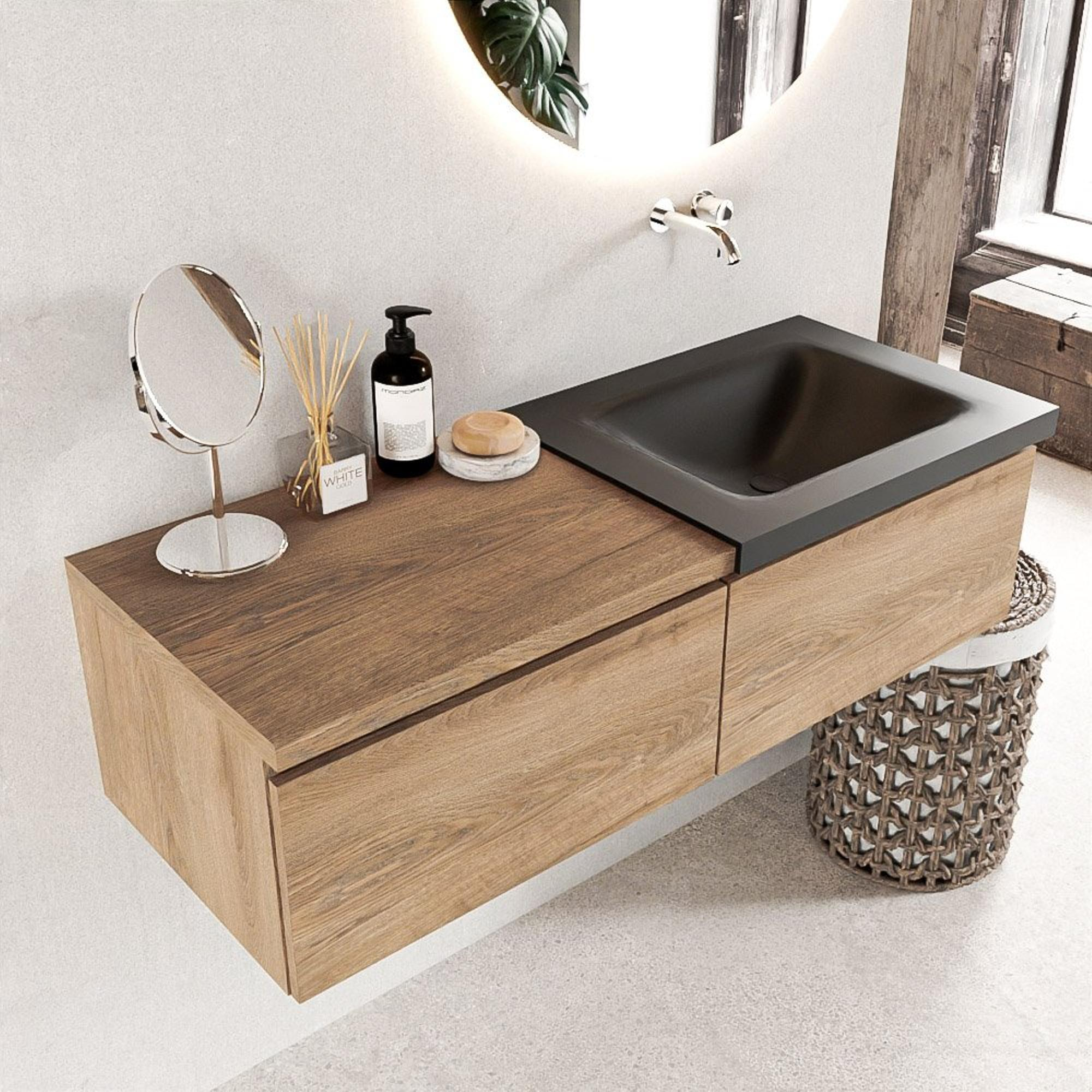 MONDIAZ BUKLA 120cm badmeubel met module 60 kleur Washed Oak met 2 lades. Wastafel CLOUD rechts 0 kraangaten kleur Urban.