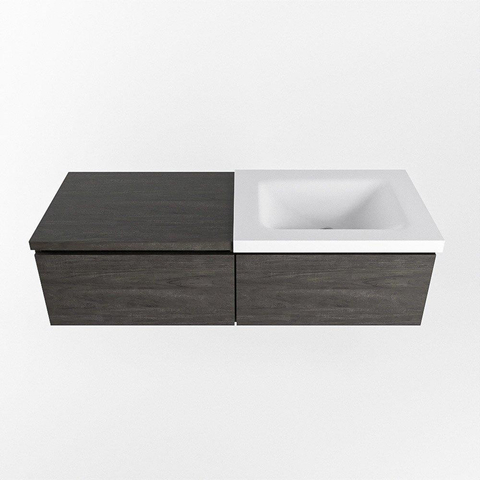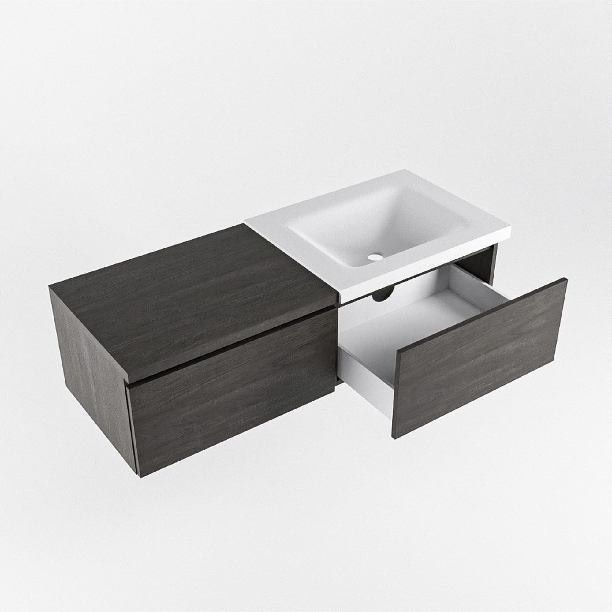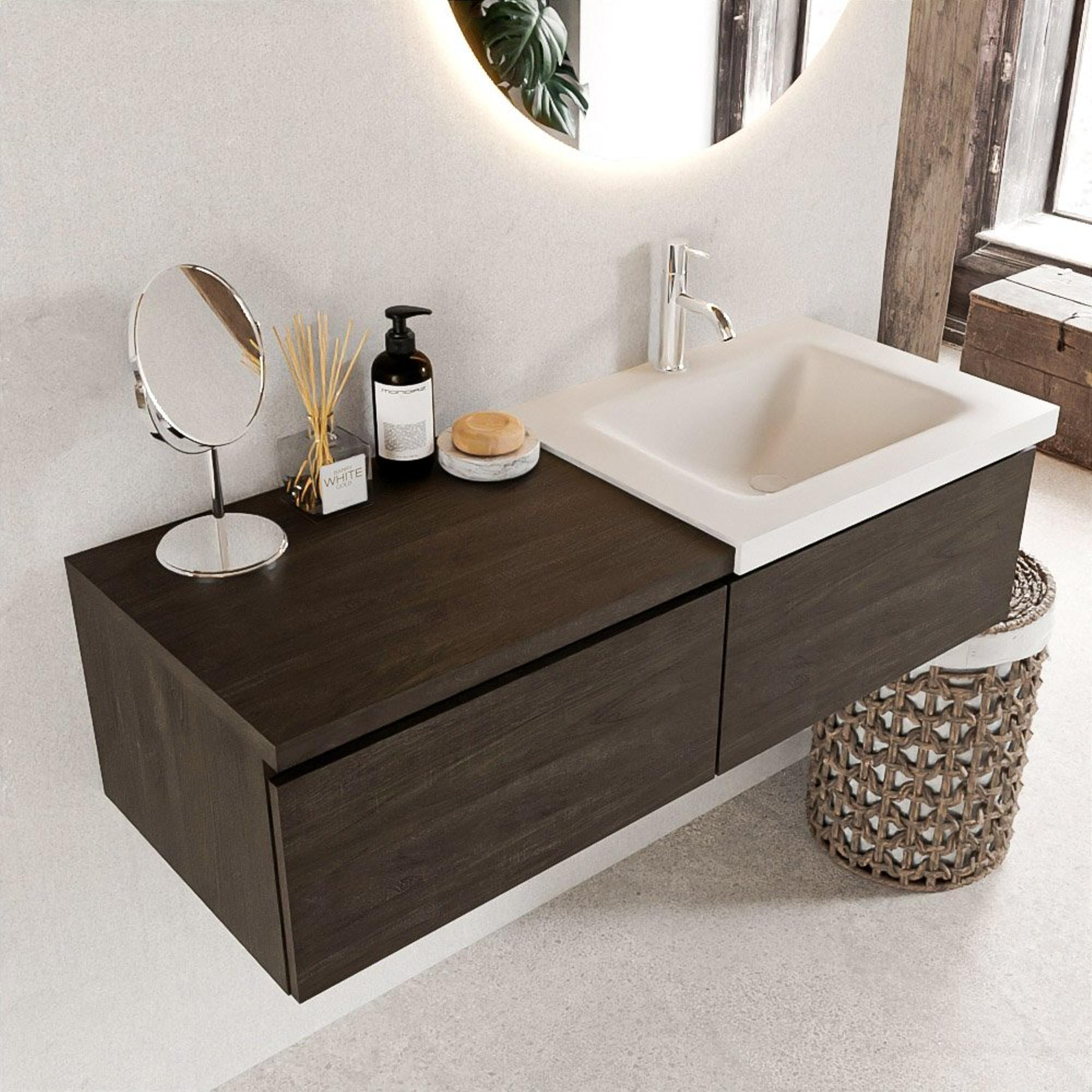 MONDIAZ BUKLA 120cm badmeubel met module 60 kleur Dark Brown met 2 lades. Wastafel CLOUD rechts 1 kraangat kleur Talc.