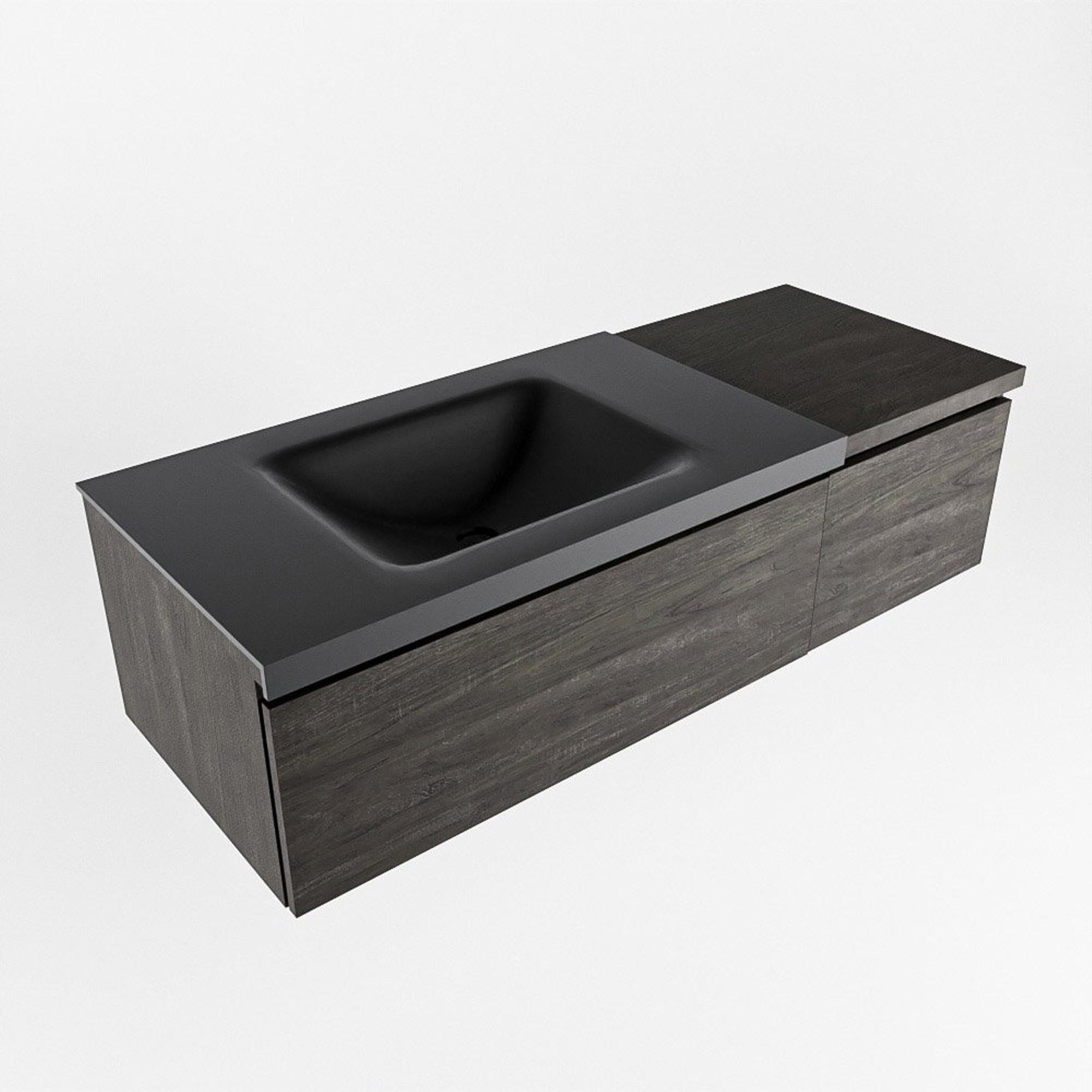 MONDIAZ BUKLA 120cm badmeubel met module 40 kleur Dark Brown met 2 lades. Wastafel CLOUD links 0 kraangaten kleur Urban.