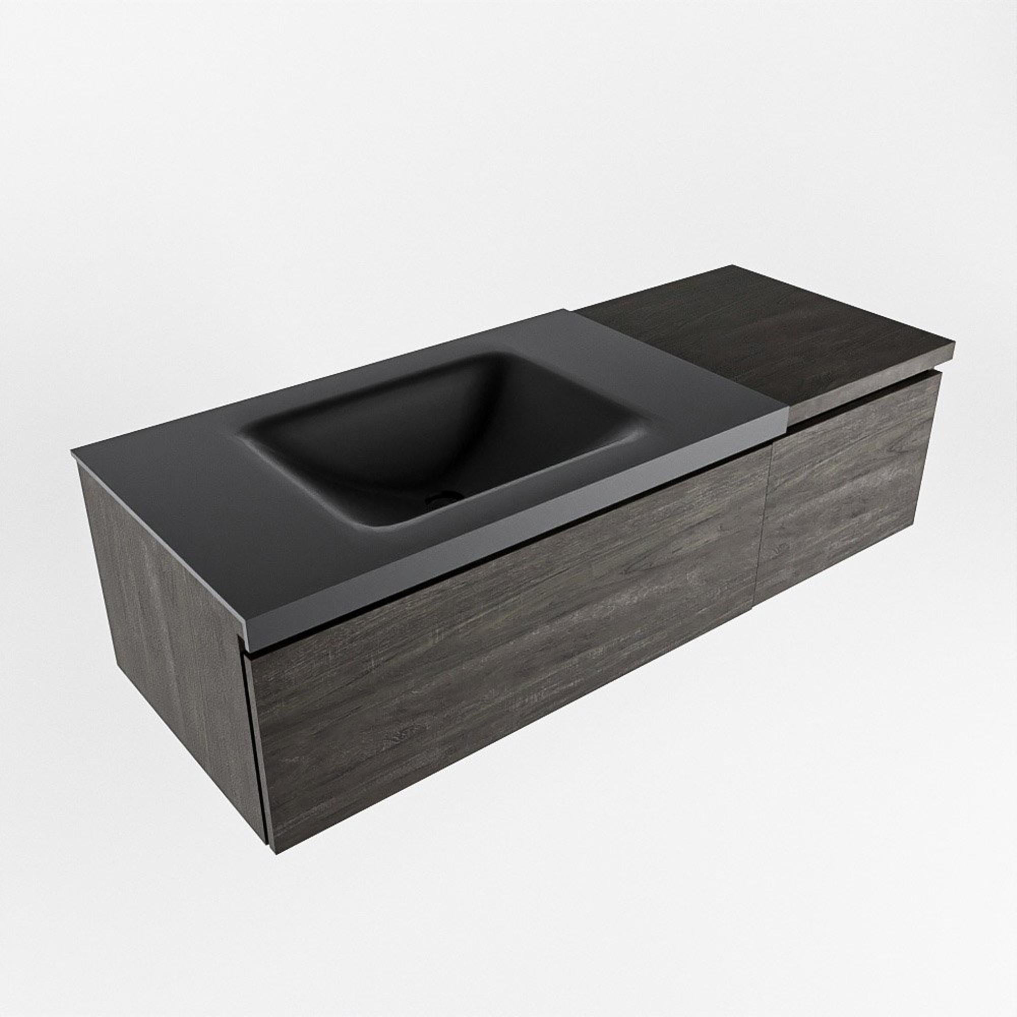 MONDIAZ BUKLA 120cm badmeubel met module 40 kleur Dark Brown met 2 lades. Wastafel CLOUD links 1 kraangat kleur Urban.