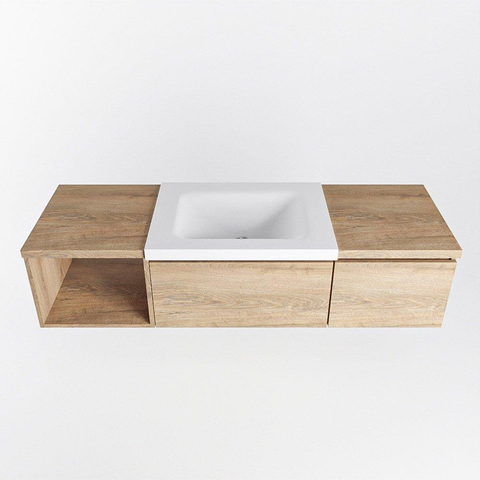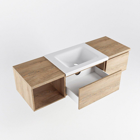 MONDIAZ BUKLA 140cm badmeubel met open module 40 links kleur Washed Oak met 2 lades. Wastafel CLOUD midden 0 kraangaten kleur Talc.