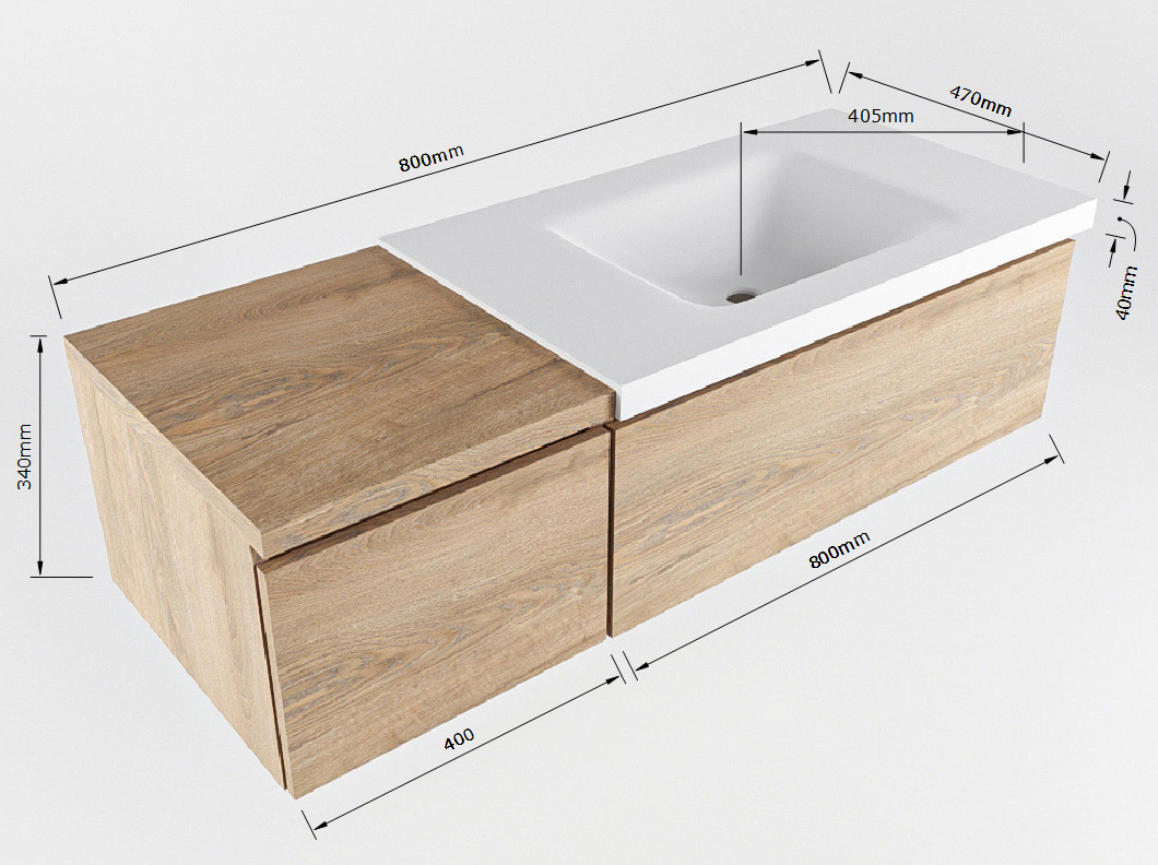 Naast zijn prachtige uitstraling is dit badmeubel ook zeer functioneel. De lades zijn soepel te openen en sluiten, waardoor je gemakkelijk toegang hebt tot al je benodigdheden. De wastafel biedt voldoende ruimte voor dagelijkse verzorging, terwijl het kraangat zorgt voor eenvoudige installatie van een kraan naar keuze. Dit badmeubel combineert stijl met functionaliteit op een unieke manier.