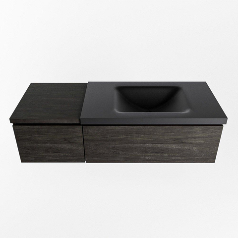 MONDIAZ BUKLA 120cm badmeubel met module 40 kleur Dark Brown met 2 lades. Wastafel CLOUD rechts 1 kraangat kleur Urban.