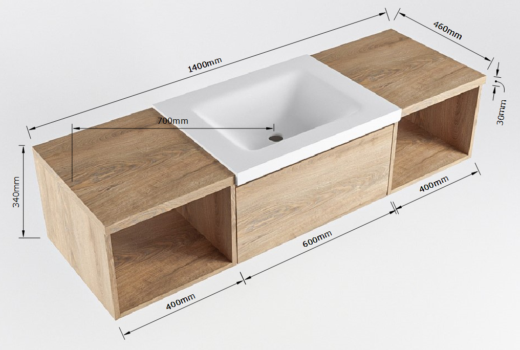 Dit prachtige badmeubel met open module en wastafel is een perfecte toevoeging aan jouw badkamer