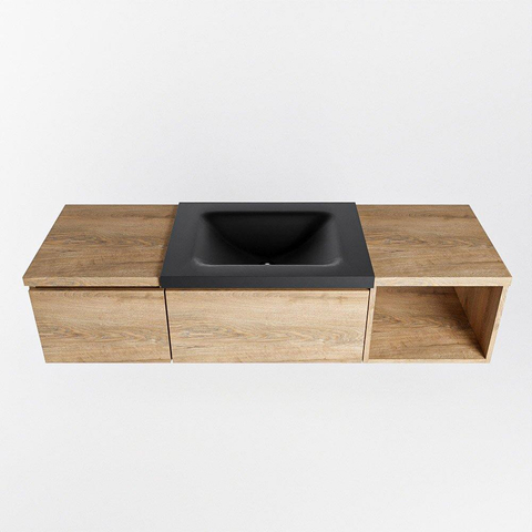 MONDIAZ BUKLA 140cm badmeubel met open module 40 rechts kleur Washed Oak met 2 lades. Wastafel CLOUD midden 1 kraangat kleur Urban.