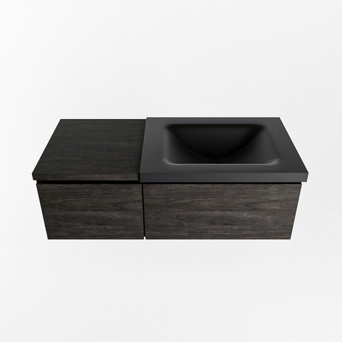 MONDIAZ BUKLA 100cm badmeubel met module 40 kleur Dark Brown met 2 lades. Wastafel CLOUD rechts 0 kraangaten kleur Urban.