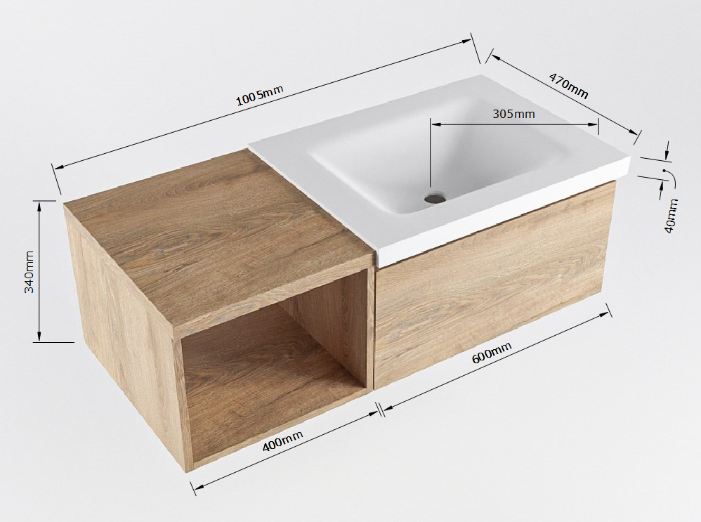 Dit badmeubel met open module en wastafel is een ware aanwinst voor elke badkamer