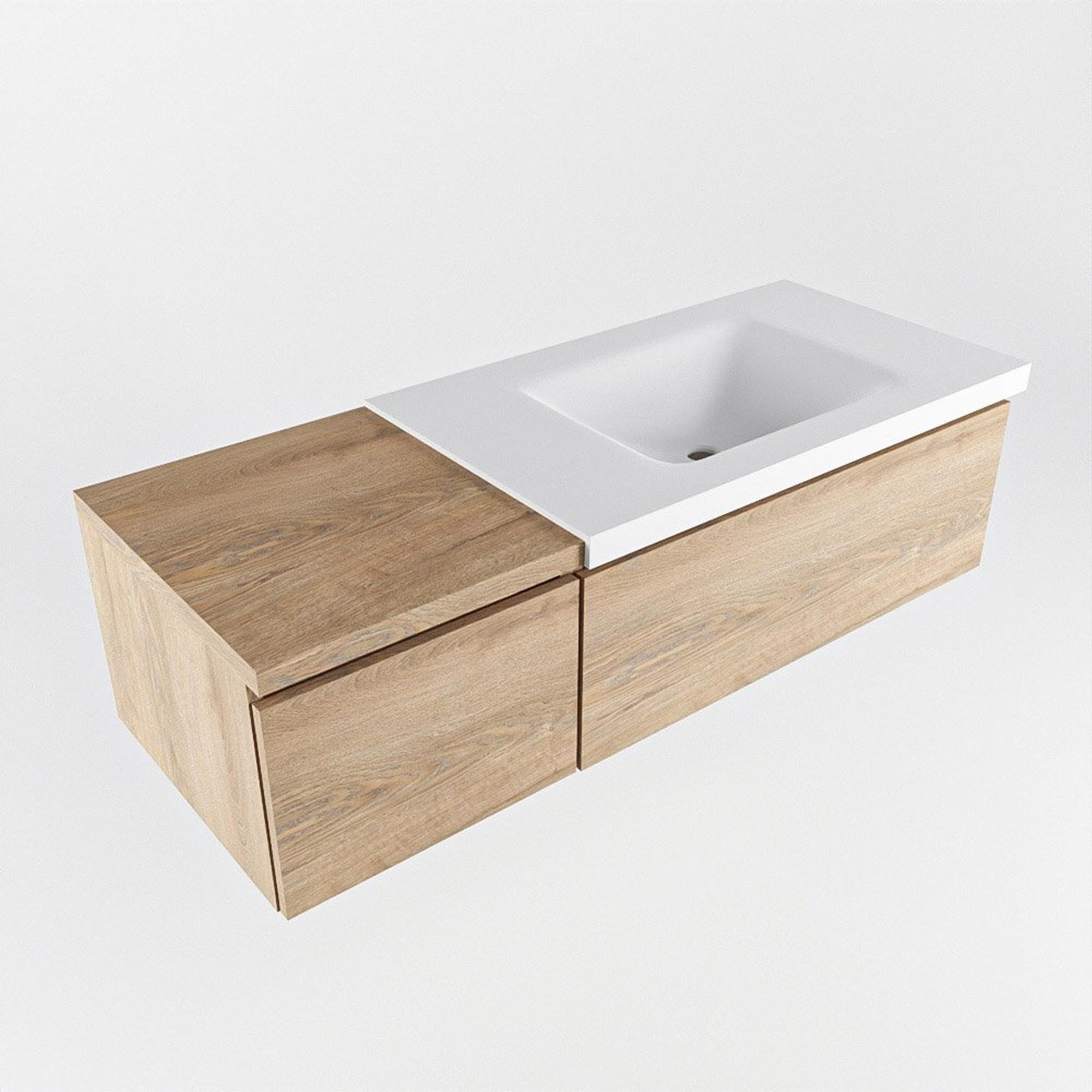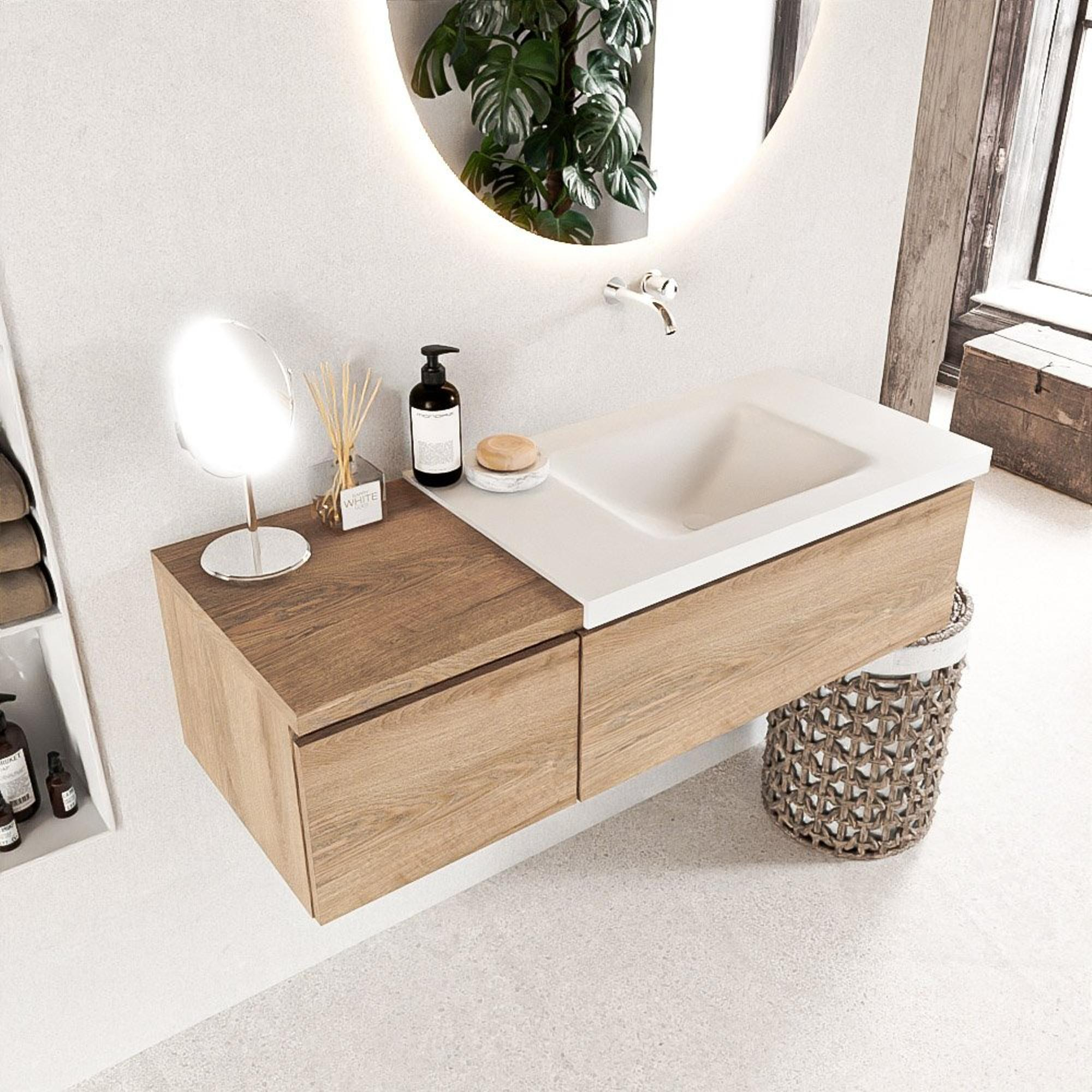 MONDIAZ BUKLA 120cm badmeubel met module 40 kleur Washed Oak met 2 lades. Wastafel CLOUD rechts 0 kraangaten kleur Talc.