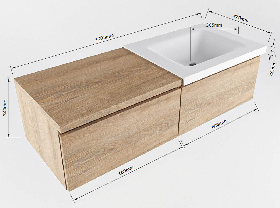 - 120cm badmeubel met module 60 in de kleur Washed Oak