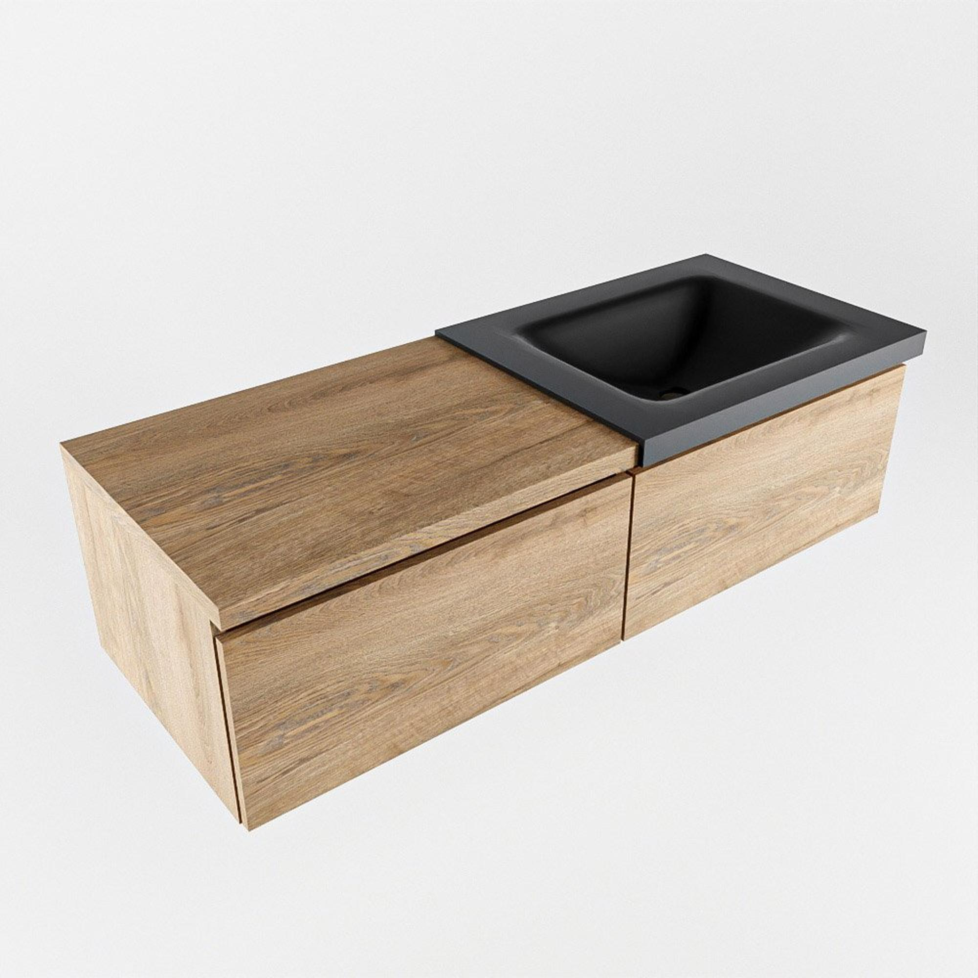 MONDIAZ BUKLA 120cm badmeubel met module 60 kleur Washed Oak met 2 lades. Wastafel CLOUD rechts 1 kraangat kleur Urban.