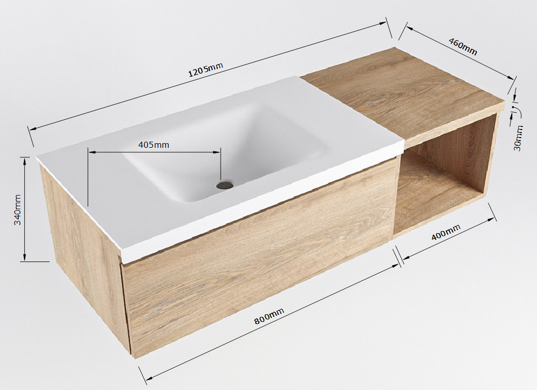 Naast zijn prachtige uiterlijk is dit badmeubel ook zeer functioneel. De 1 lade biedt voldoende opbergruimte voor al jouw badkamerspullen, waardoor je badkamer netjes en georganiseerd blijft. De ruime wastafel biedt genoeg ruimte voor dagelijkse verzorging en de open module zorgt voor een luchtige uitstraling.
