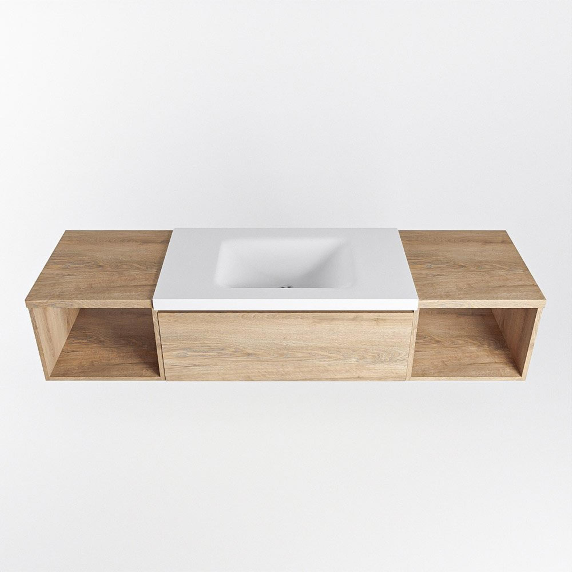 MONDIAZ BUKLA 160cm badmeubel met open module 40 L+R kleur Washed Oak met 2 lades. Wastafel CLOUD midden 1 kraangat kleur Talc.