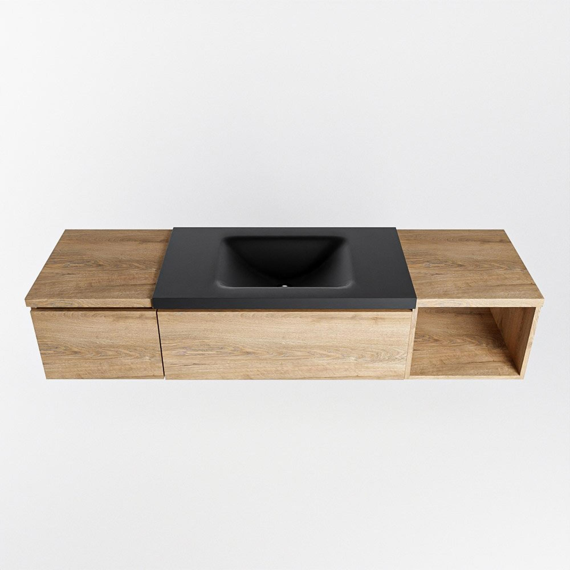 MONDIAZ BUKLA 160cm badmeubel met open module 40 rechts kleur Washed Oak met 2 lades. Wastafel CLOUD midden 0 kraangaten kleur Urban.