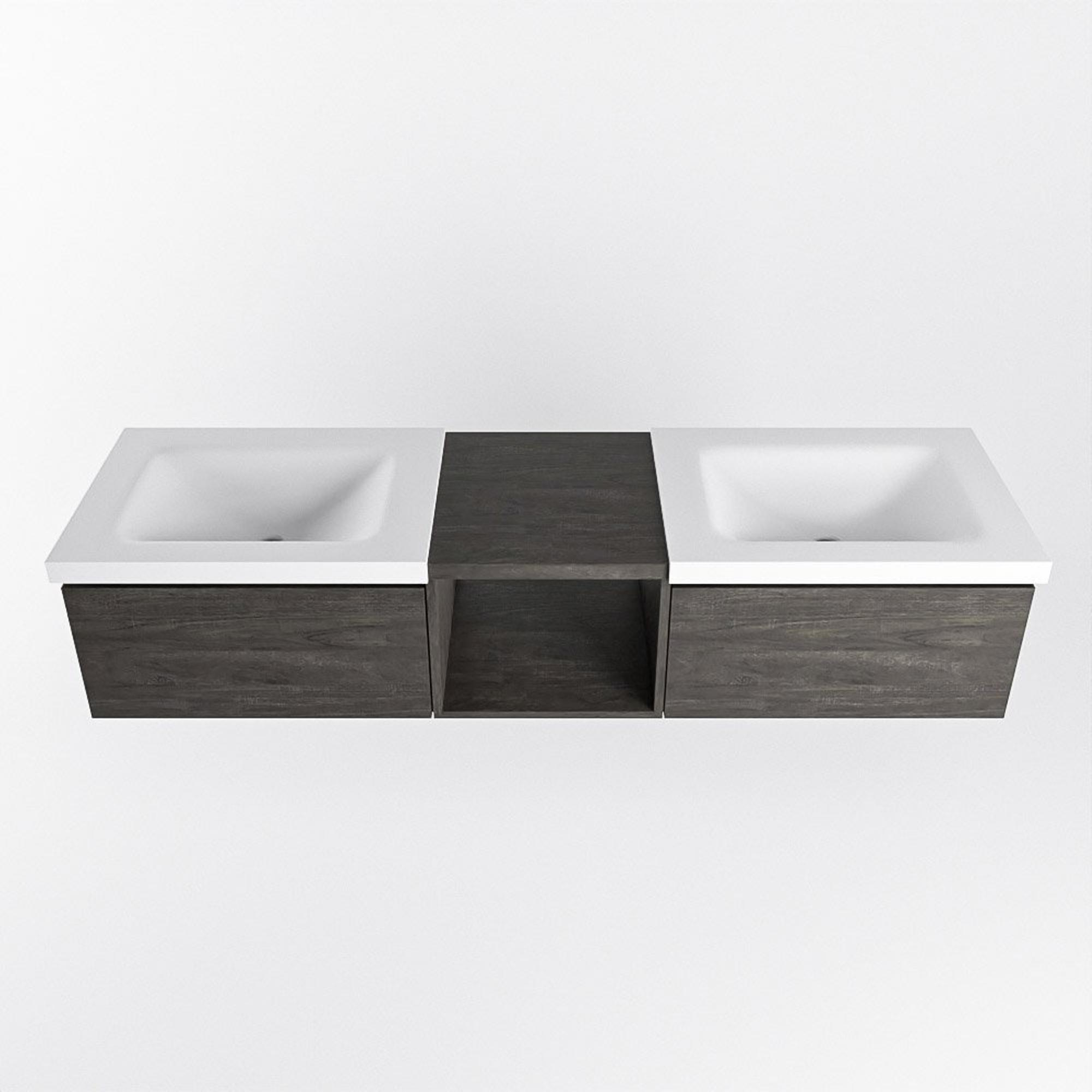 MONDIAZ BUKLA 160cm badmeubel met open module 40 kleur Dark Brown met 2 lades. Wastafel CLOUD dubbel 0 kraangaten kleur Talc.