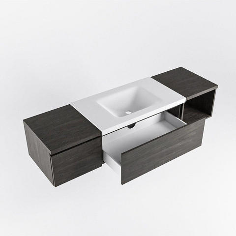 MONDIAZ BUKLA 160cm badmeubel met open module 40 rechts kleur Dark Brown met 2 lades. Wastafel CLOUD midden 1 kraangat kleur Talc.