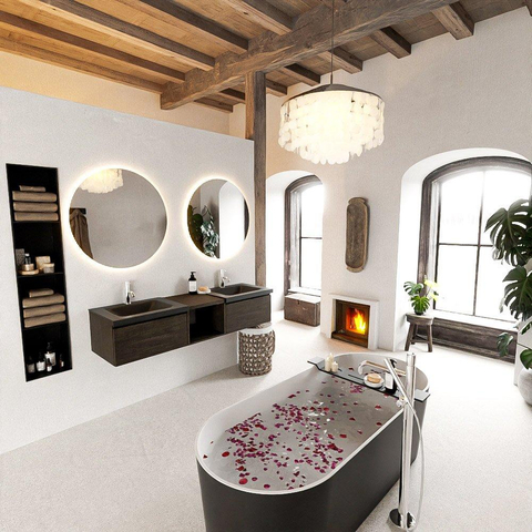 Ervaar de ultieme luxe met dit MONDIAZ BUKLA badmeubel. De combinatie van het donkere hout en de moderne vormgeving creëert een sfeer van luxe en comfort in jouw badkamer. Geniet van een spa-achtige ervaring elke keer dat je gebruik maakt van dit prachtige meubelstuk.